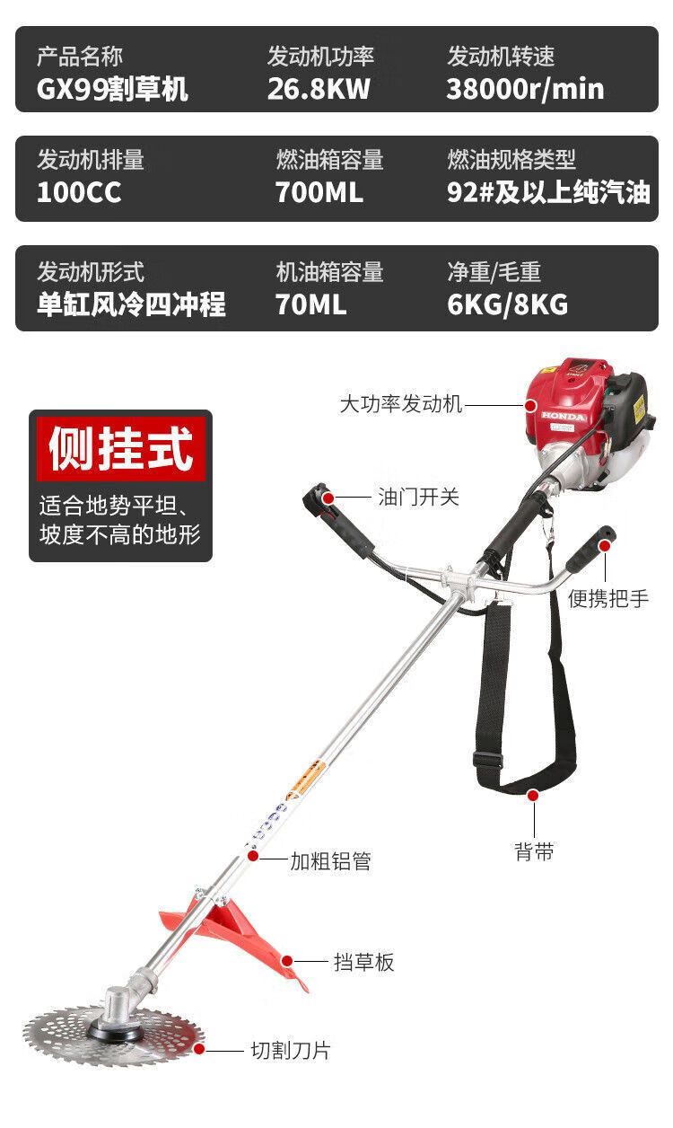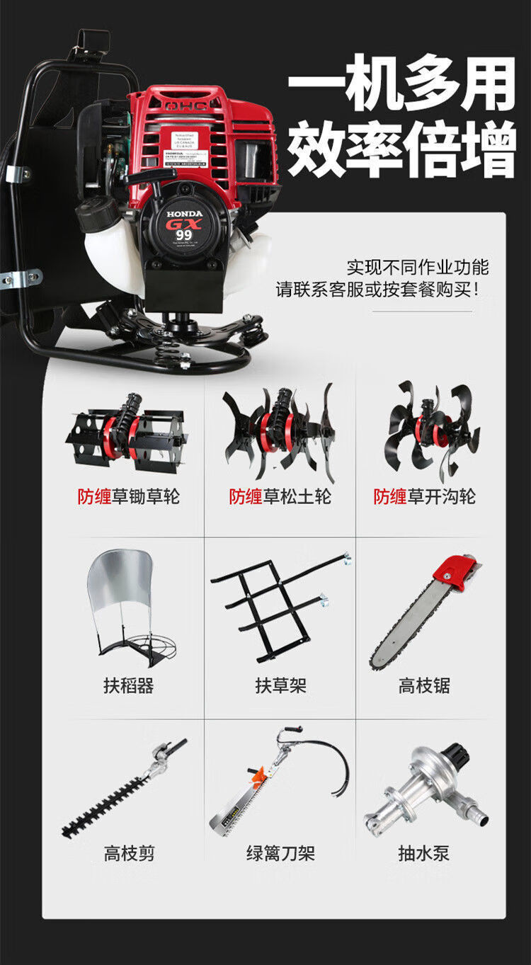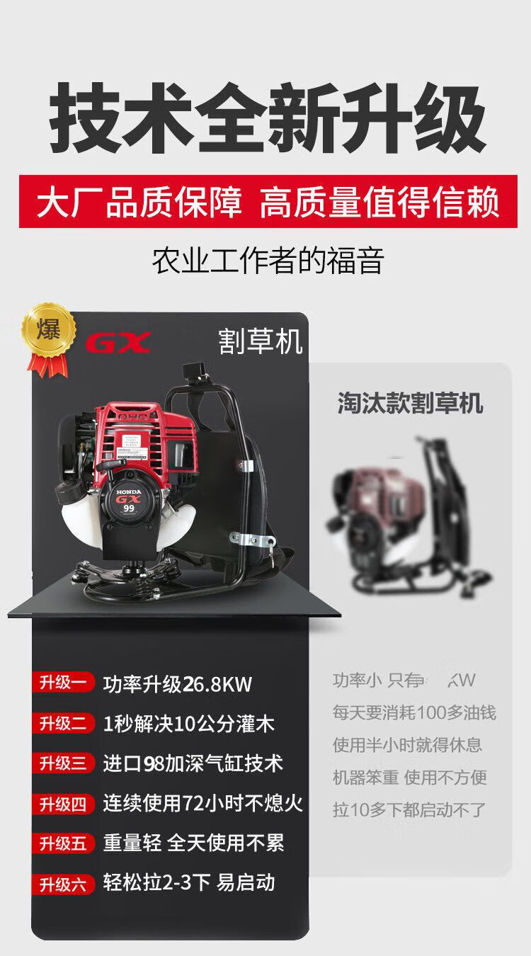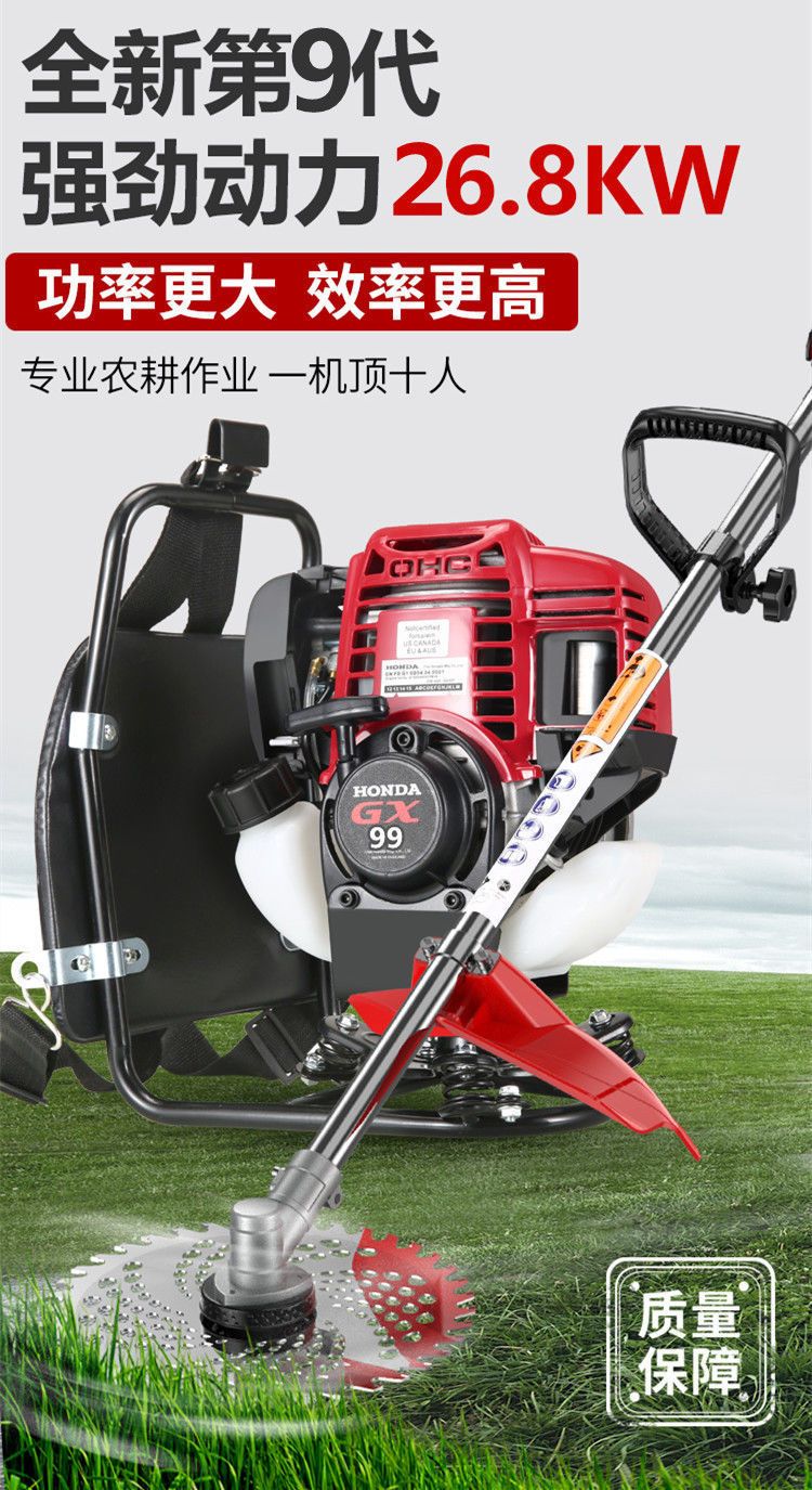 Wuyang Honda's new Honda gx99 lawn mower, high-power brush cutter, weeding, weeding, rice harvesting, land reclamation, and loose soil mountain machine. Four-stroke GX90 backpack standard configuration + gift bag