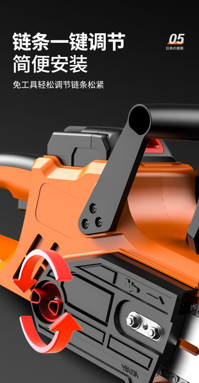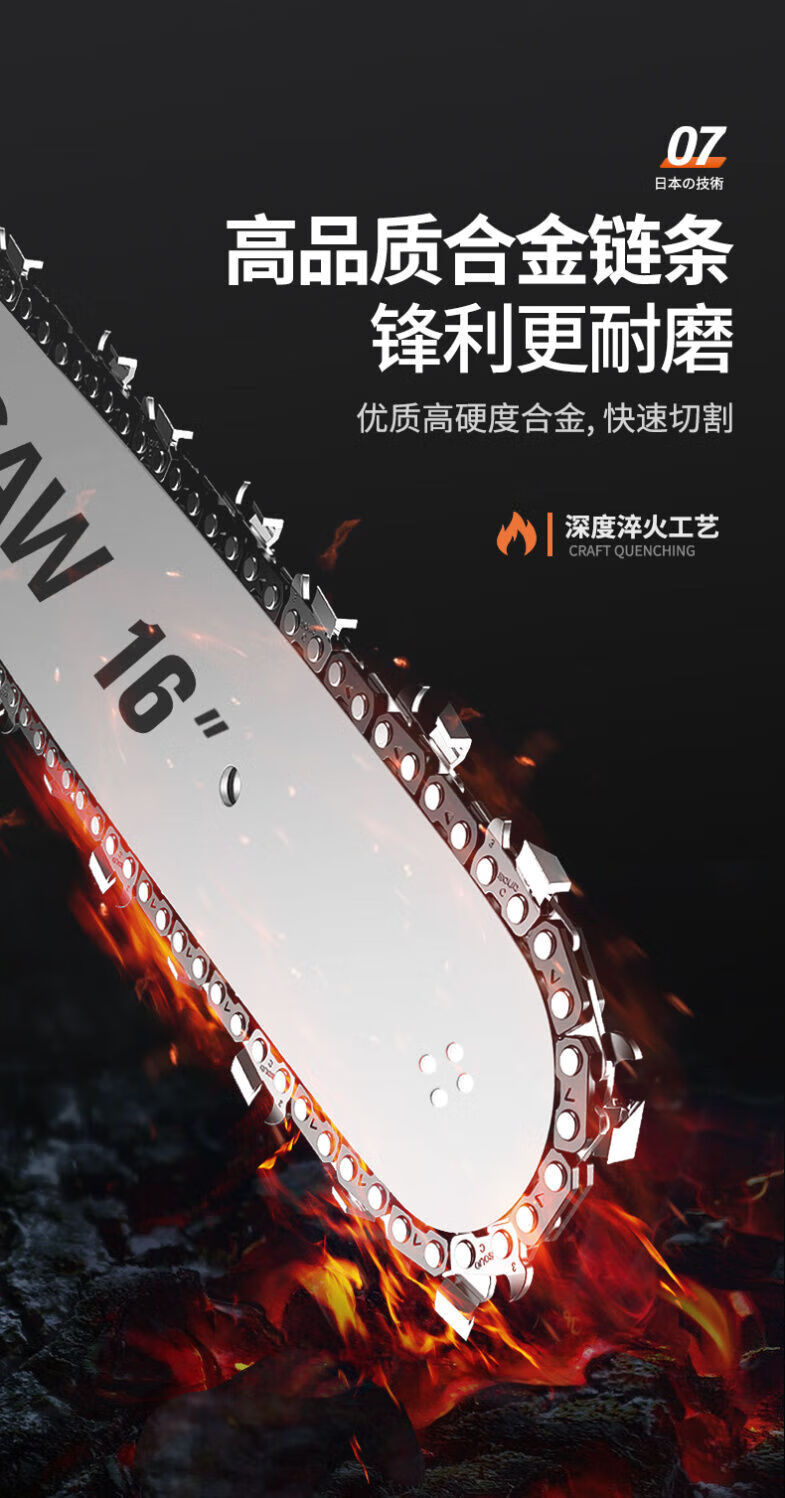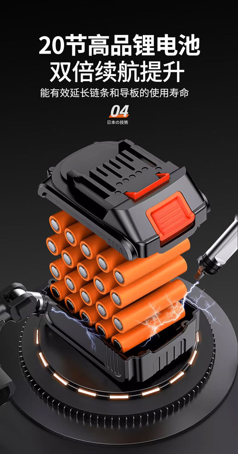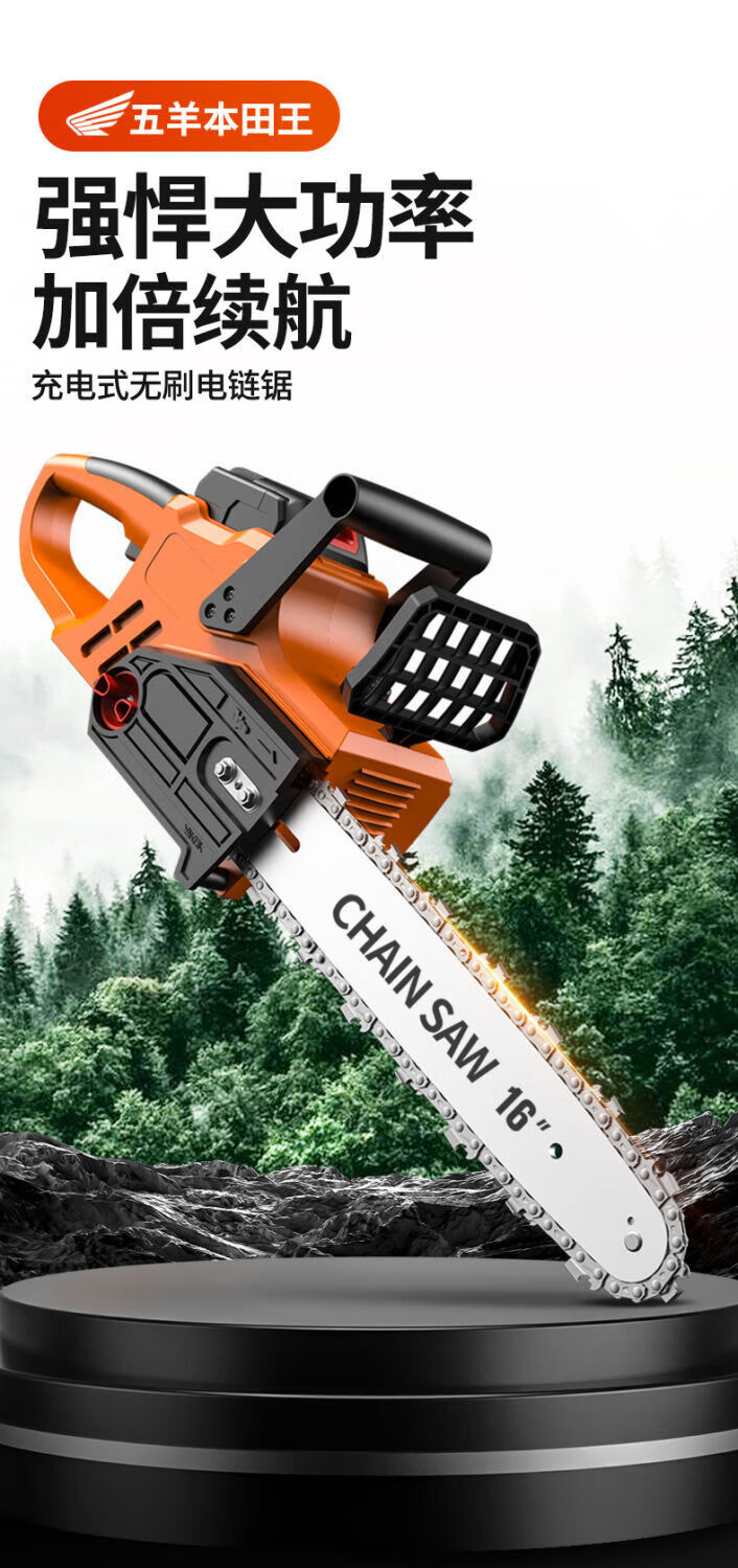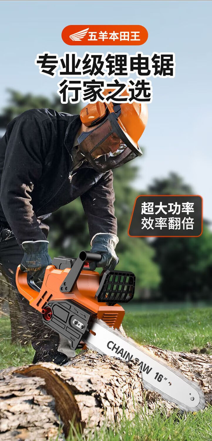 Wuyang Honda chainsaw rechargeable high-power lithium-ion chain saw small multi-functional household outdoor firewood felling saw handheld saw classic 12-inch 15-section two-electric two-chain normal