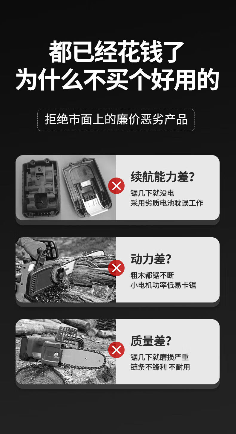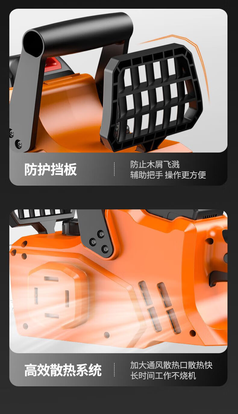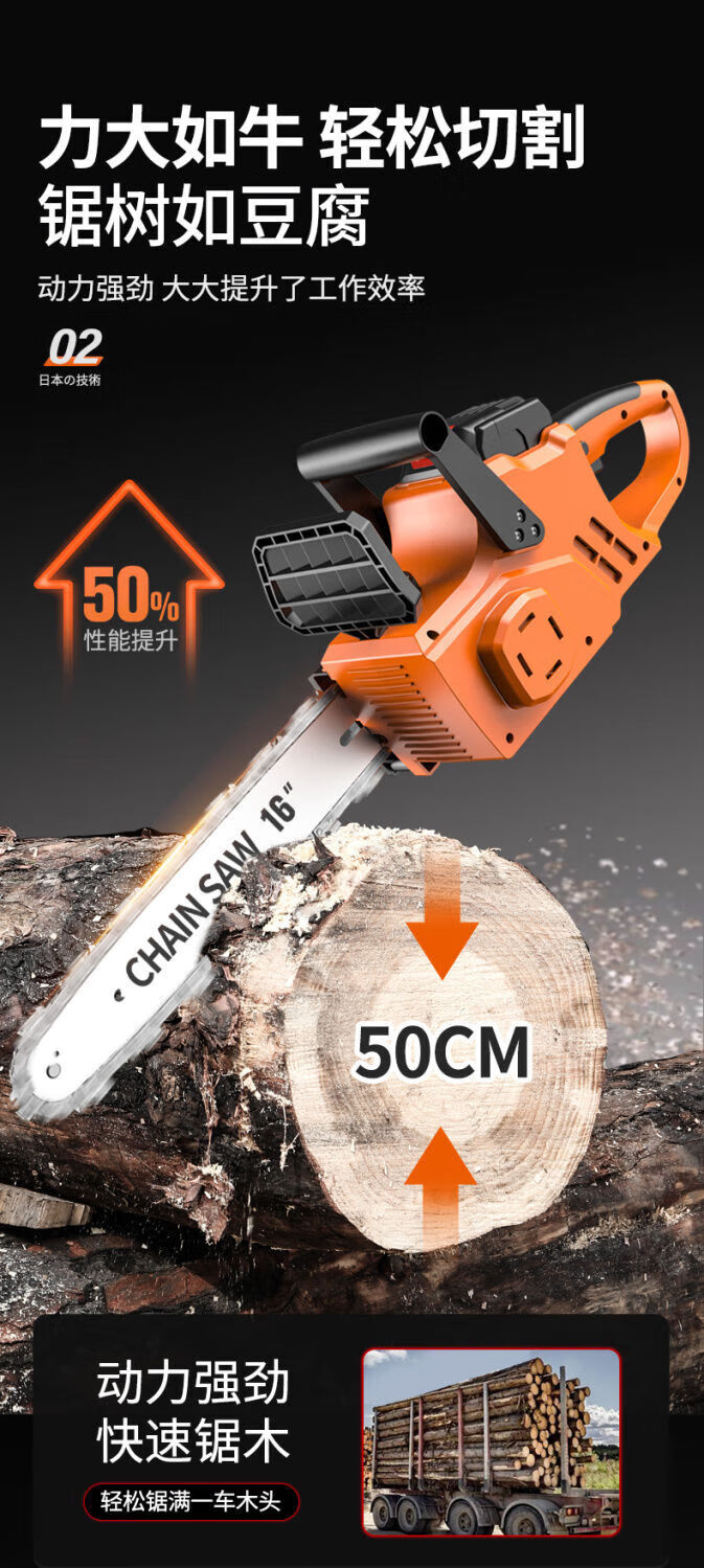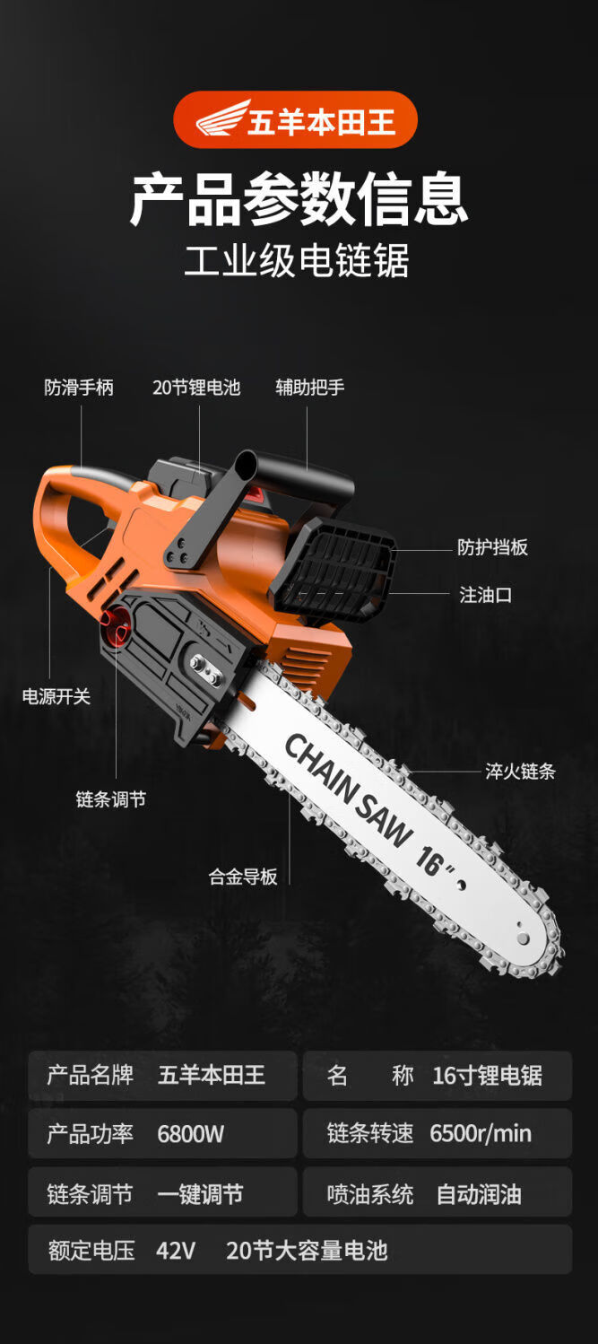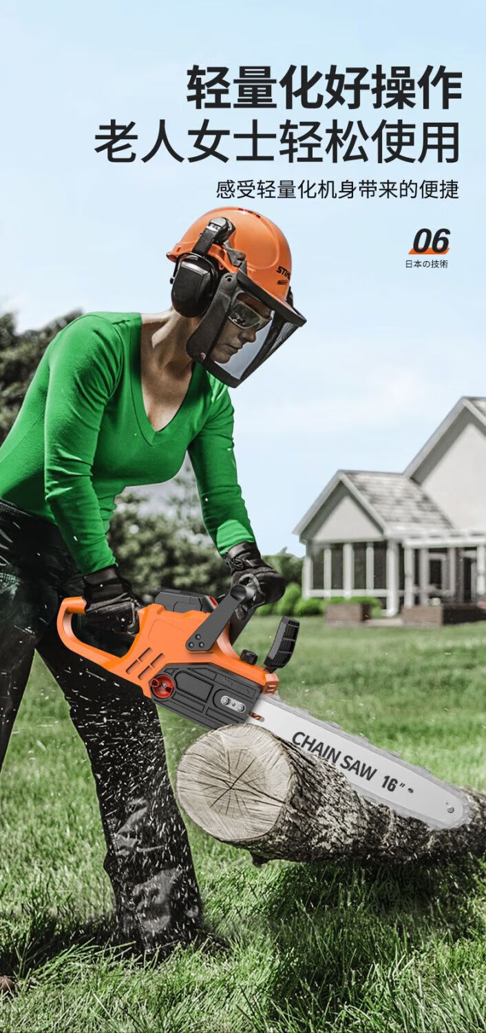Wuyang Honda chainsaw rechargeable high-power lithium-ion chain saw small multi-functional household outdoor firewood felling saw handheld saw classic 12-inch 15-section two-electric two-chain normal