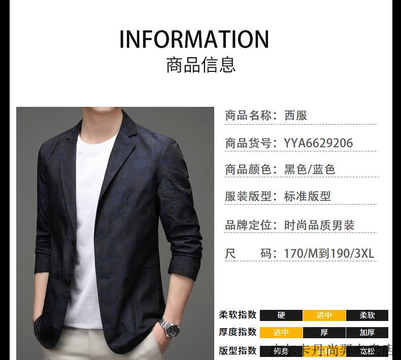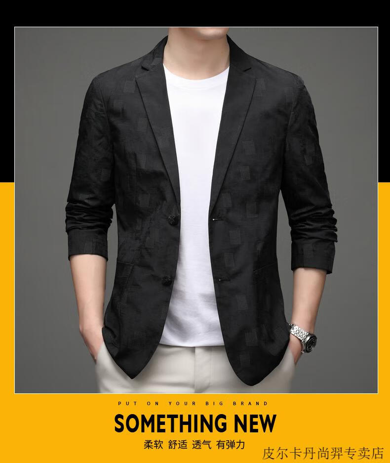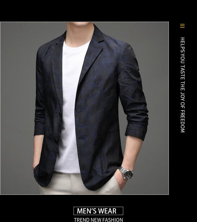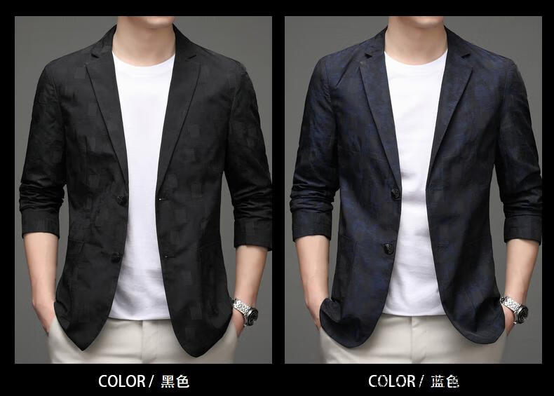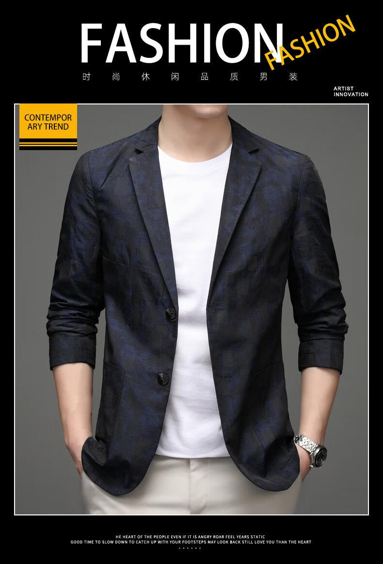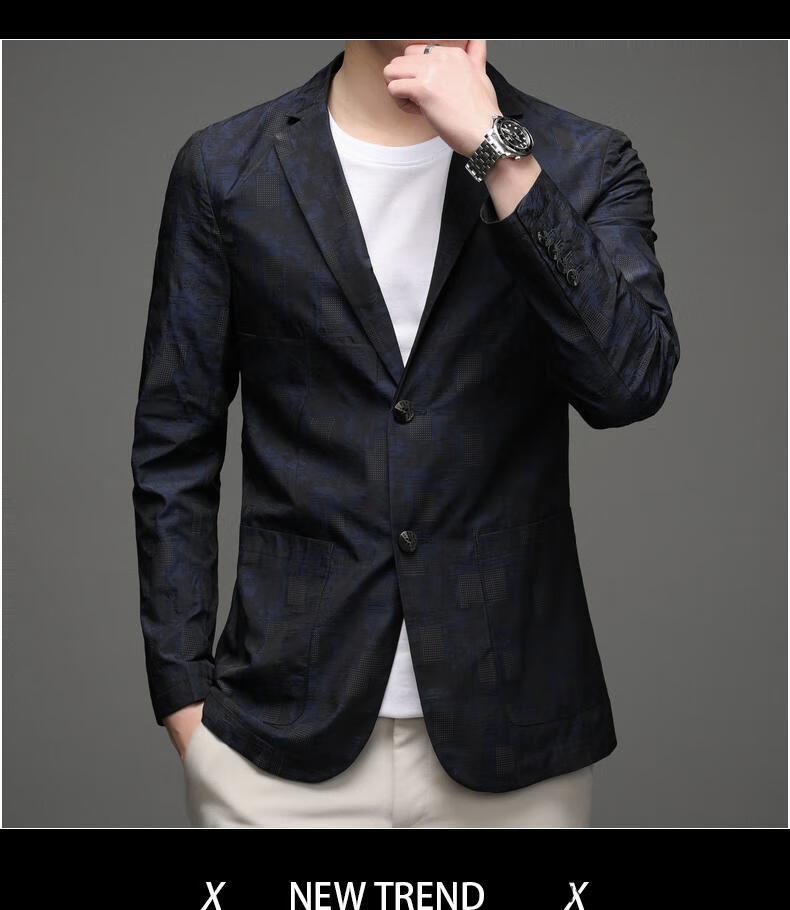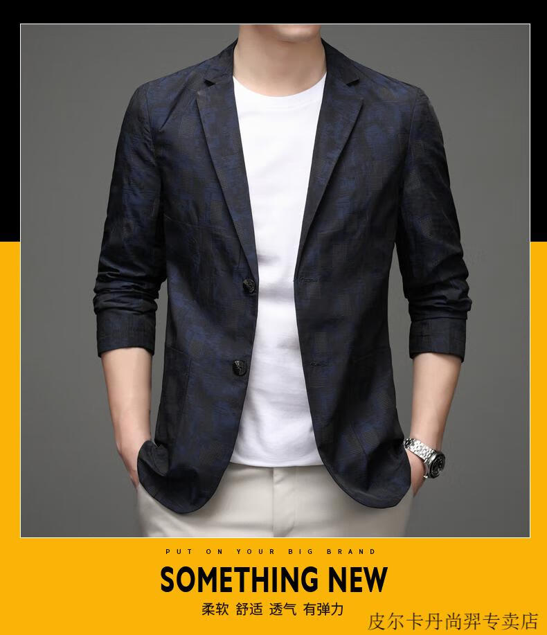 Pierre Cardin Spring and Autumn Blazer Men's 2025 New Casual Thin Unisex Men's Fashion Korean Printed Slim Small Suit Blue XL 180 Suitable for 150-165 Jin Jin equals 0.5 kg