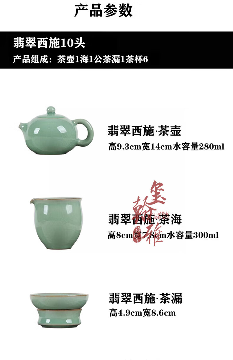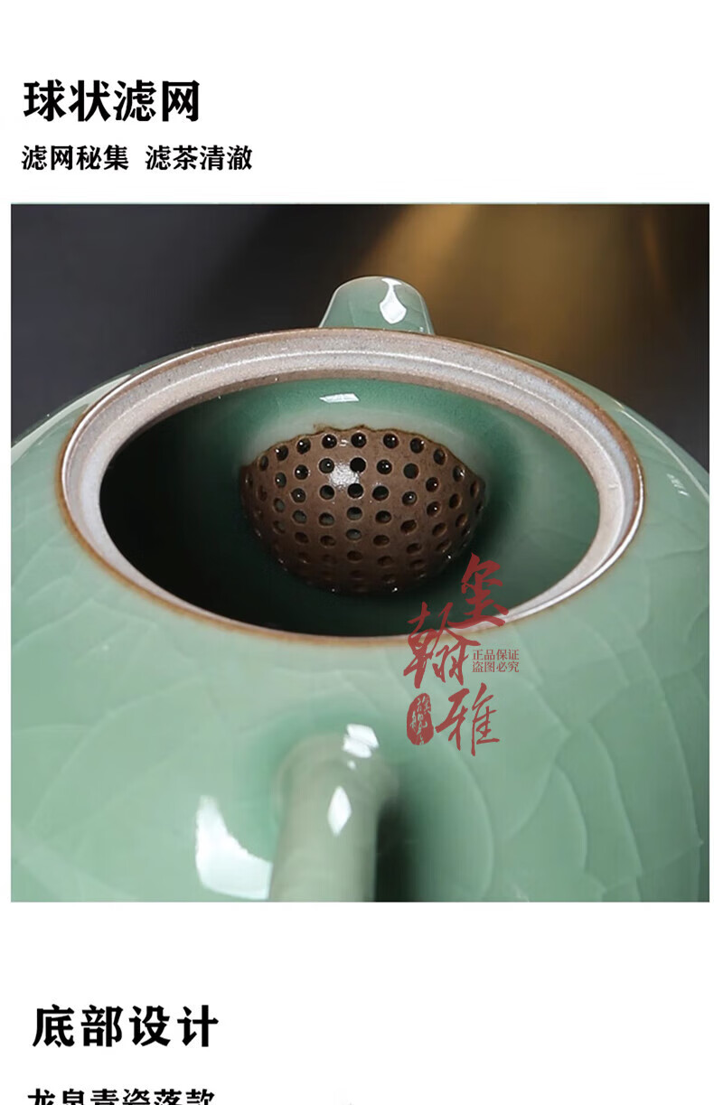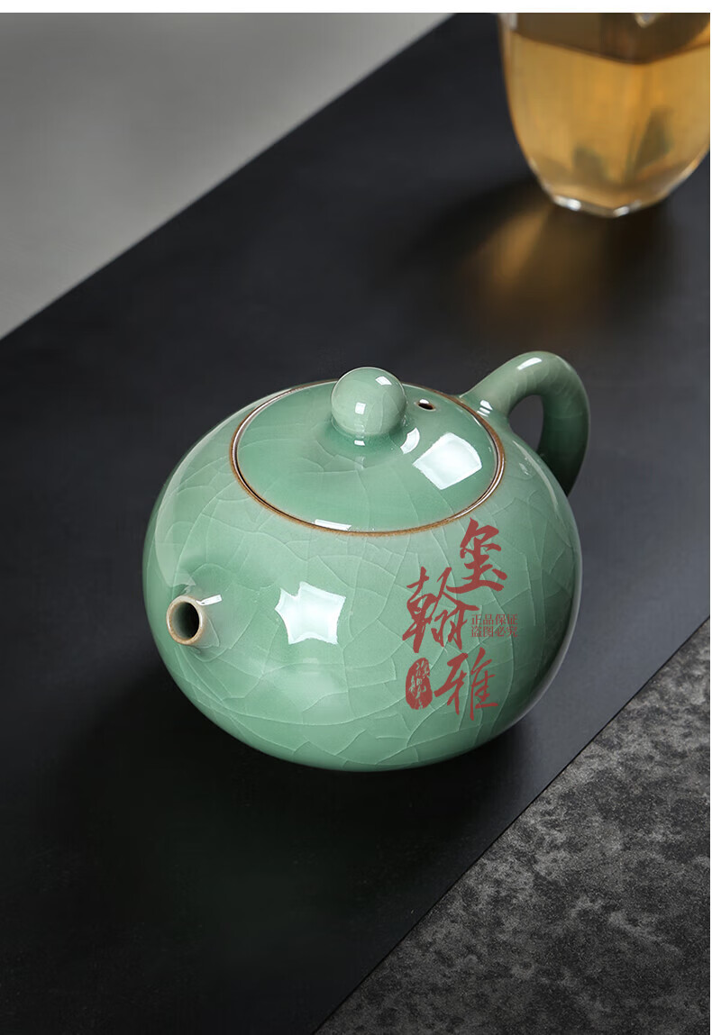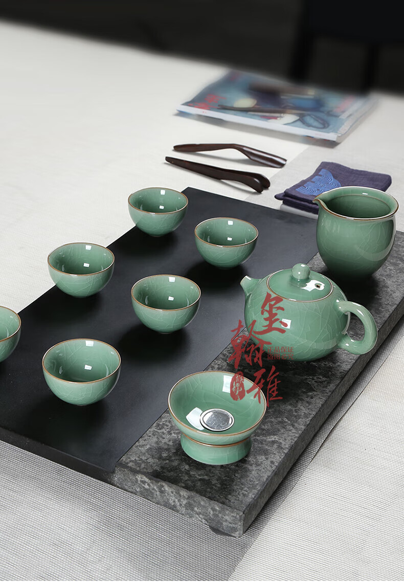 ROYHOYE Longquan Celadon High-end Ge Kiln Ice Crack Kung Fu Tea Set Ceramic Teapot Home Tea Maker Tea Cup Gift Jade Xishi 10-head Tea Set
