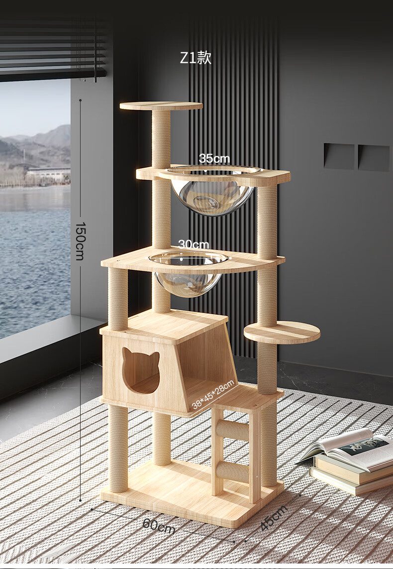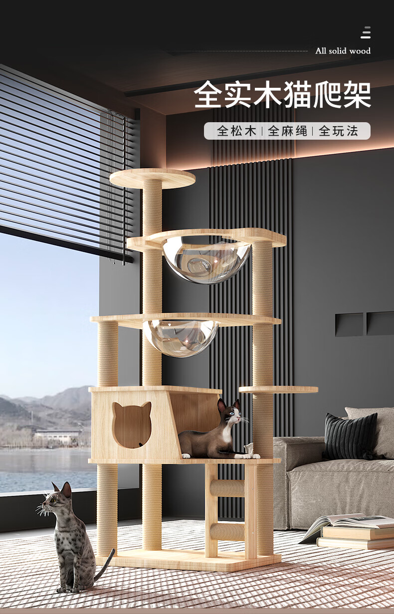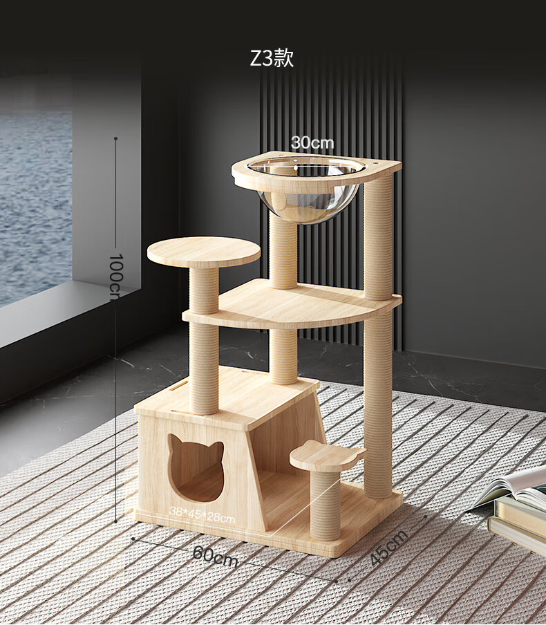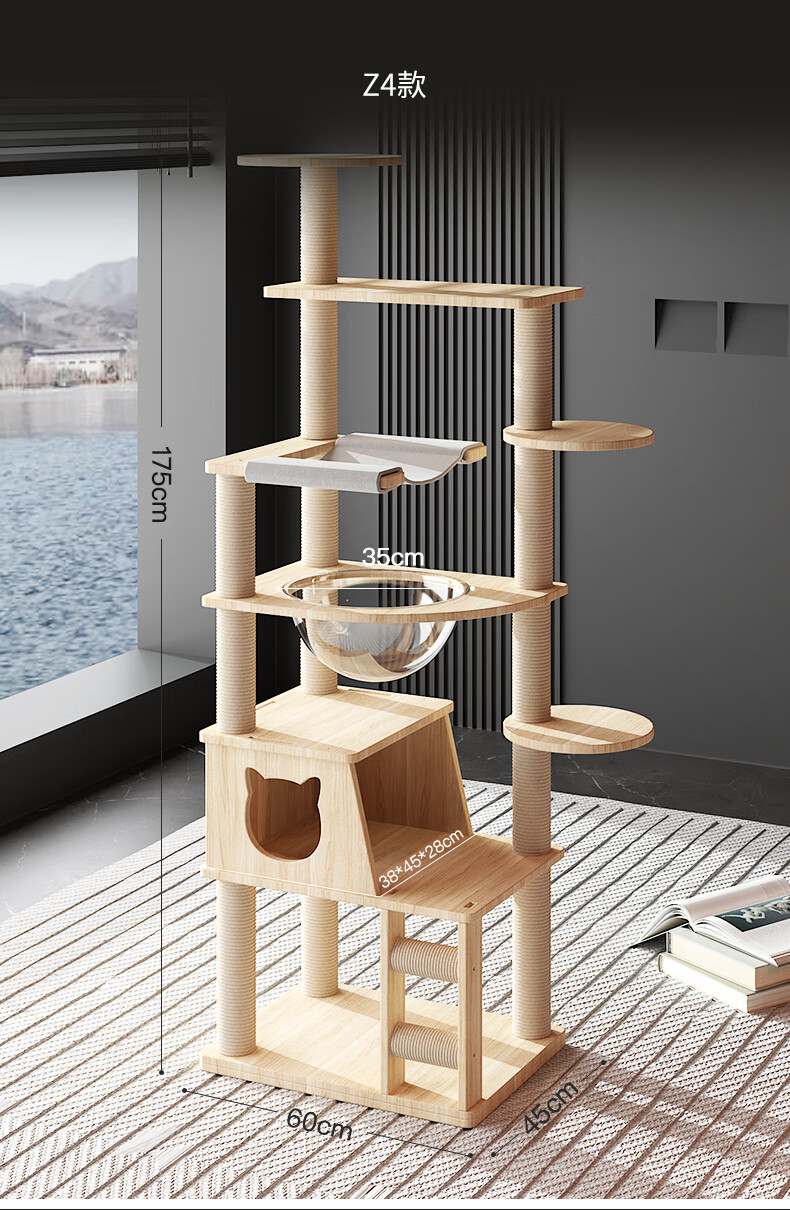 Pet Beya Pet Beya Cat Climbing Frame Cat Nest Cat Tree All-in-One All Solid Wood Does Not Take Up Small Cat Shelf Space Capsule Large Household Solid Wood Column Z1