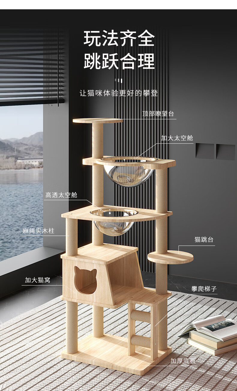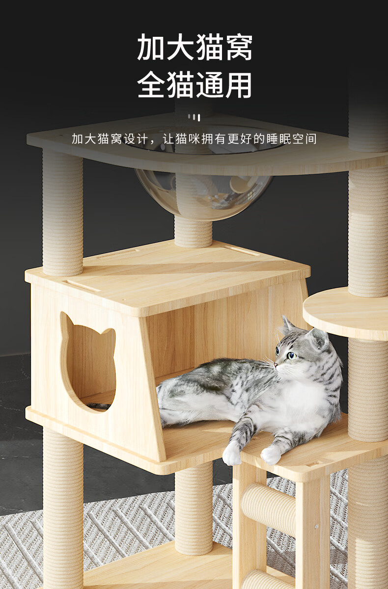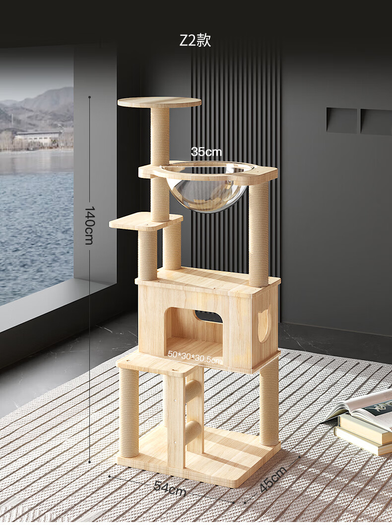 Pet Beya Pet Beya Cat Climbing Frame Cat Nest Cat Tree All-in-One All Solid Wood Does Not Take Up Small Cat Shelf Space Capsule Large Household Solid Wood Column Z1