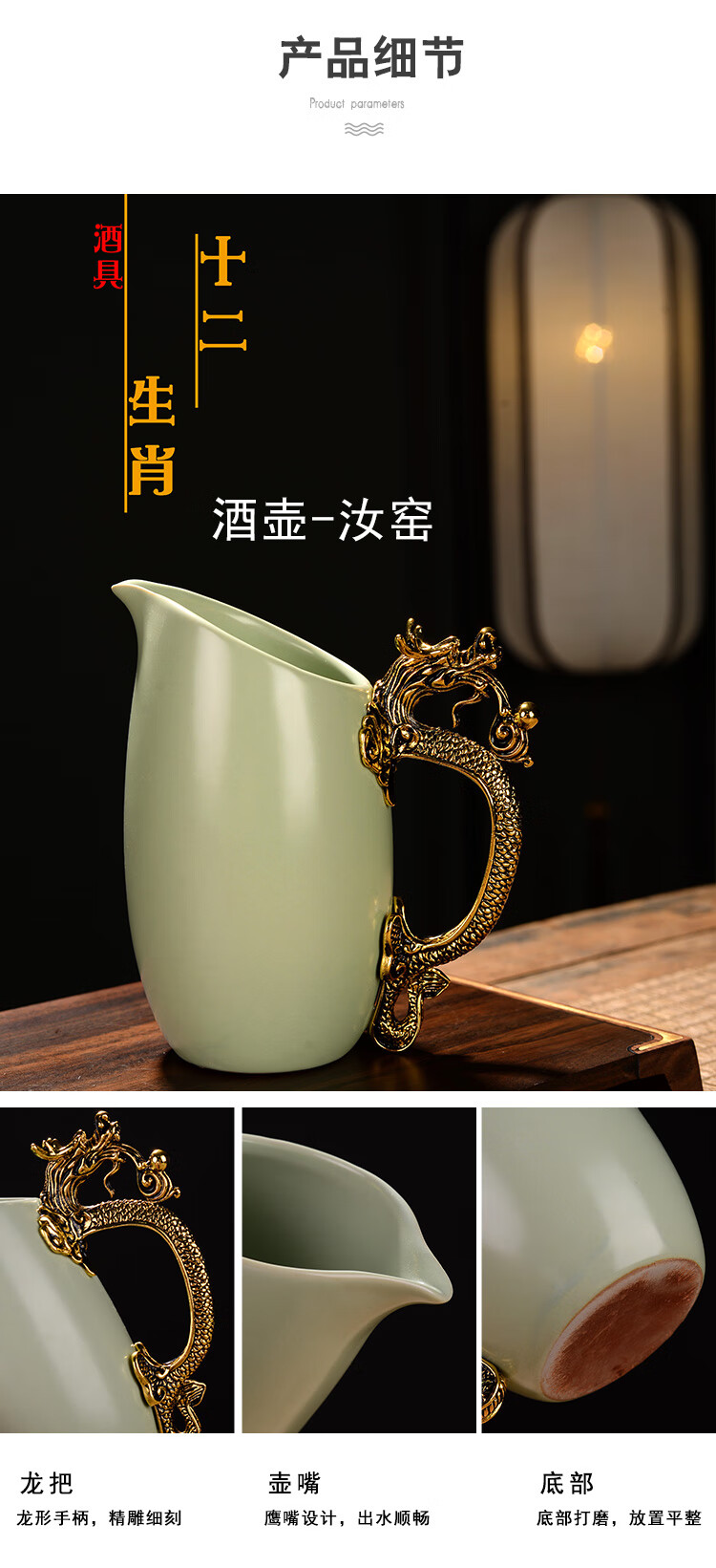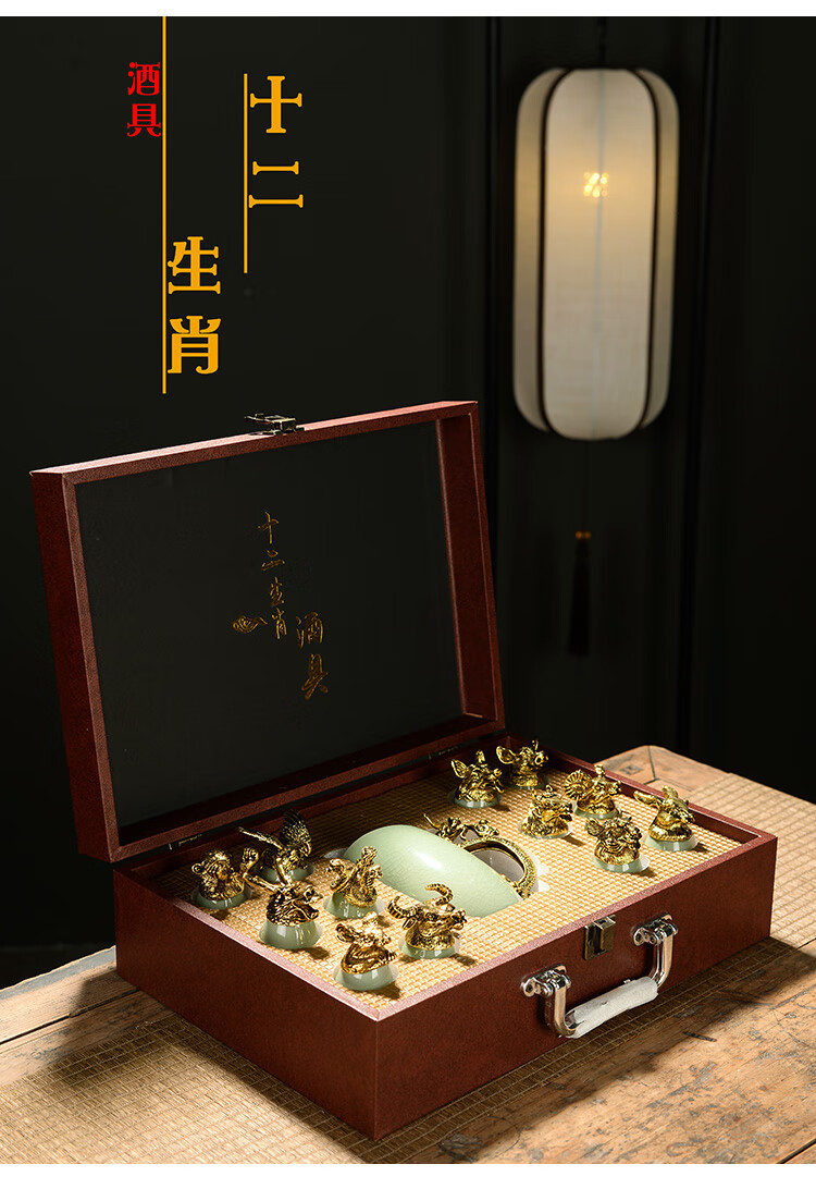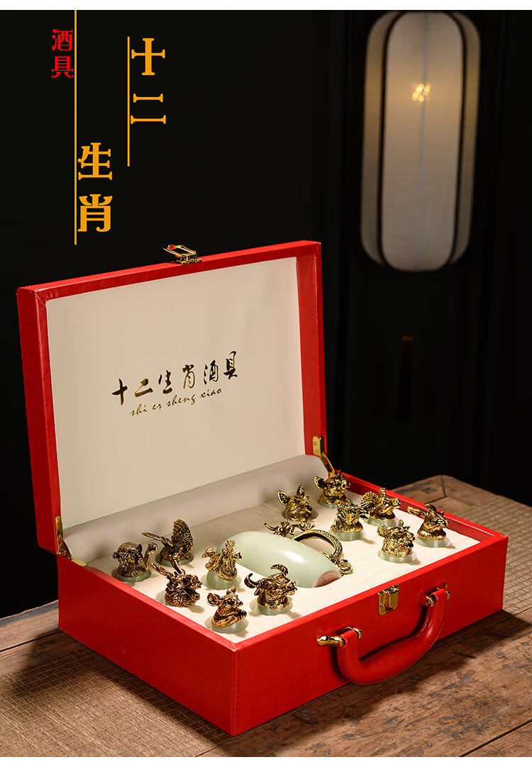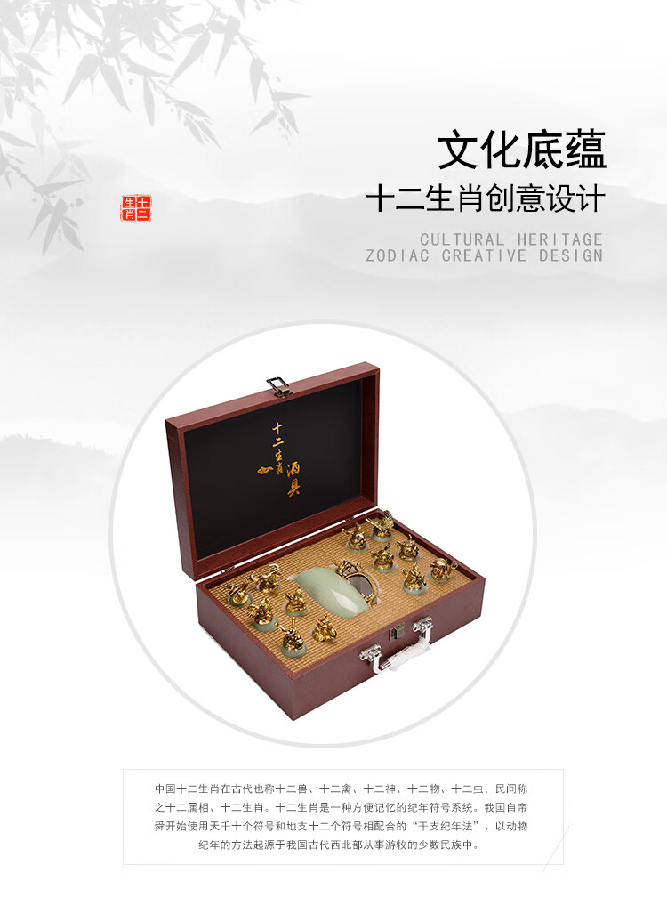 Cup Language (LANGUAGE OF CUP) Twelve Zodiac Ge Kiln Ru Kiln Ceramic Small Wine Glass Wine Set 12 Animal Head Liquor Spirit Cup Chinese Style Household Ge Kiln Complete Set with Fen Liquor (Including Gift Box)