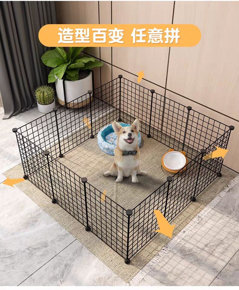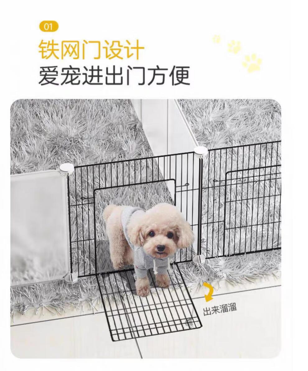 Dog fixed-point toilet fence, anti-jailbreak cat cage, isolation door, free combination training, small and medium-sized dog fence, heightened version, transparent 10 pieces with door, default delivery as shown in the picture