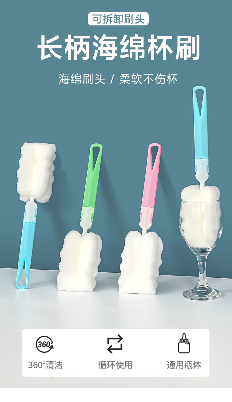 Cup brush, long-handled sponge cup brush, removable replacement head, bottle thermos cup brush, Nordic style cup brush, 1 cup brush
