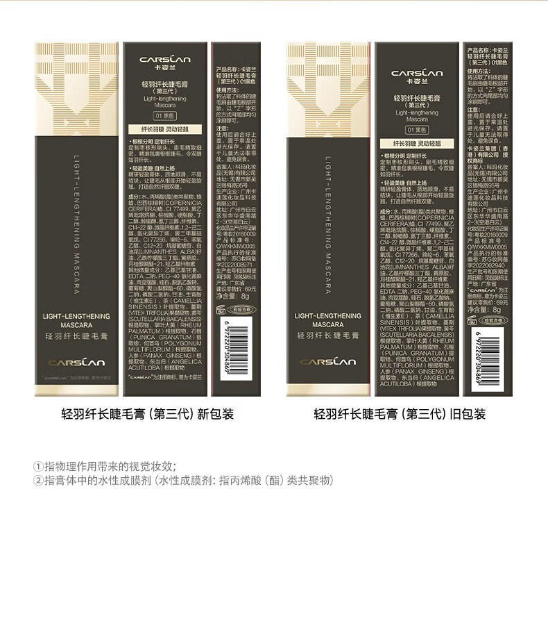 Carslan Light Feather Mascara is sweat-proof and waterproof, not easy to smudge, long, curling, long-lasting, natural base and styling, a must-have for beginners, golden tube (clear roots)