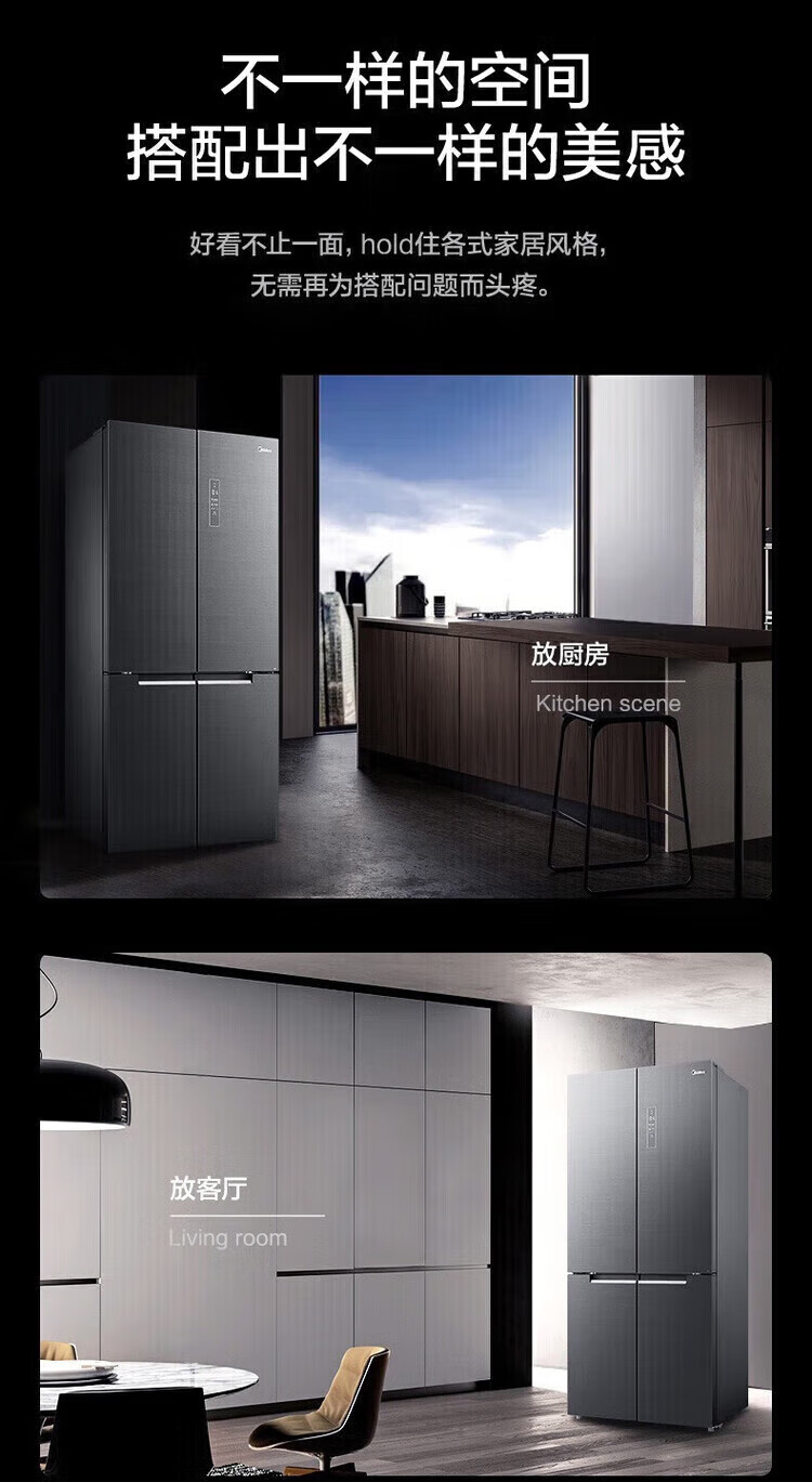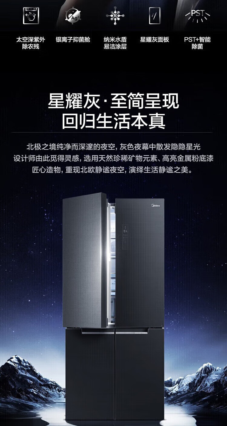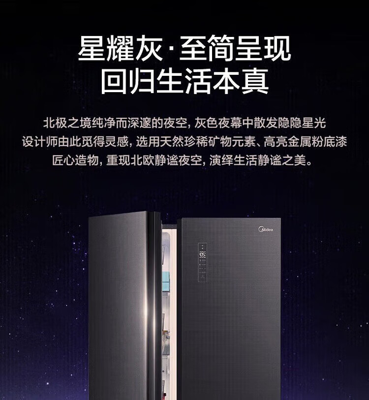 Midea Midea first-class energy-efficient air-cooled frost-free BCD-618WKGPZMA star gray dual-inversion refrigerator