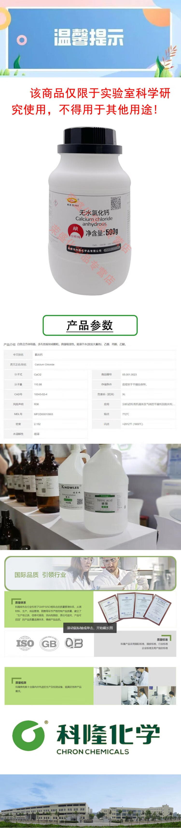 KESHI KL Anhydrous Calcium Chloride AR500g, 96%, small particles CAS 10043-52-4 Laboratory Chemistry AR500g, 96%, small particles