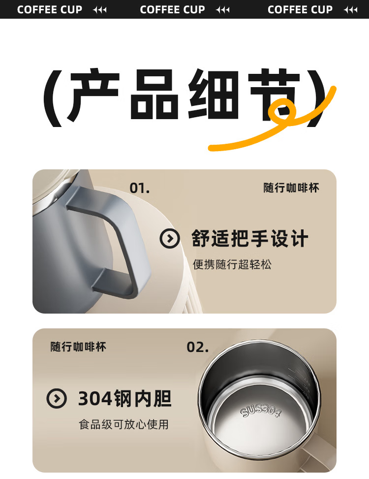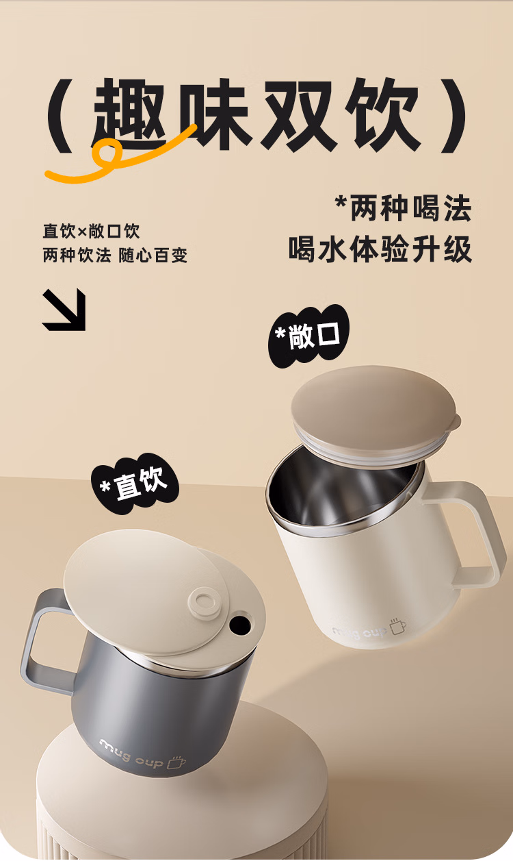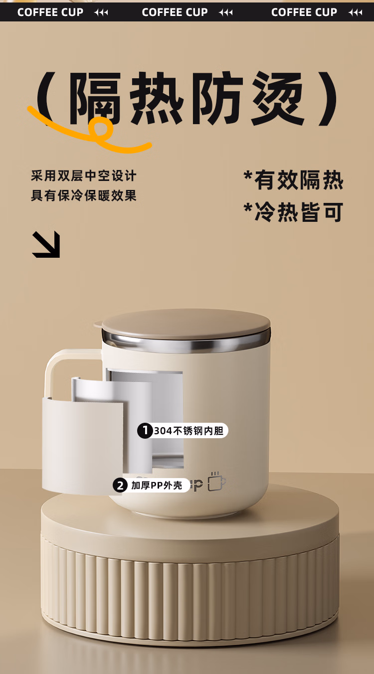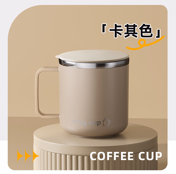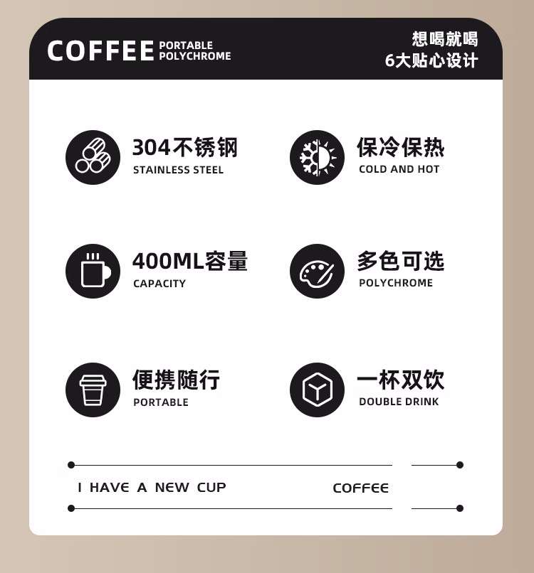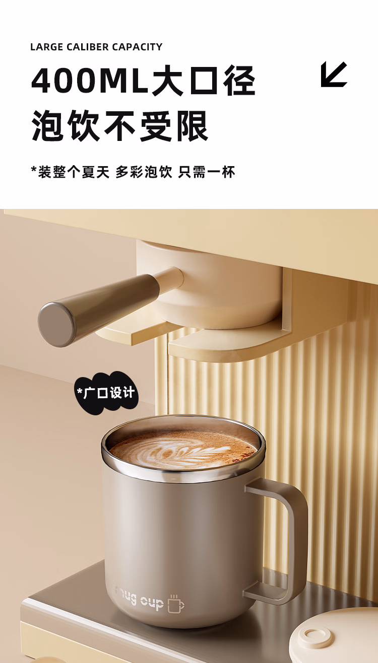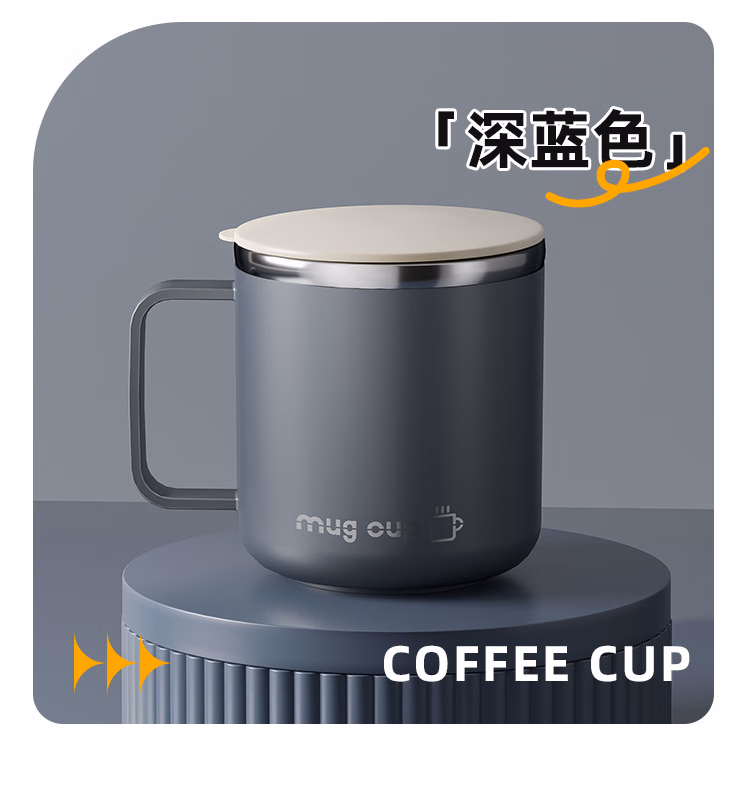 AISHUBEI water cup 304 stainless steel cold drink cup milk cup men and women office drinking cup coffee cup cold insulation cup black 400ML