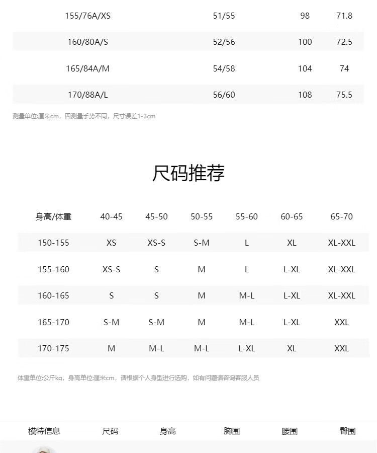 China (cm) 160-165/84-86 165-170 / 88-90 167-172 / 92-96 168-173 / 98-102 170-176 / 106-110
