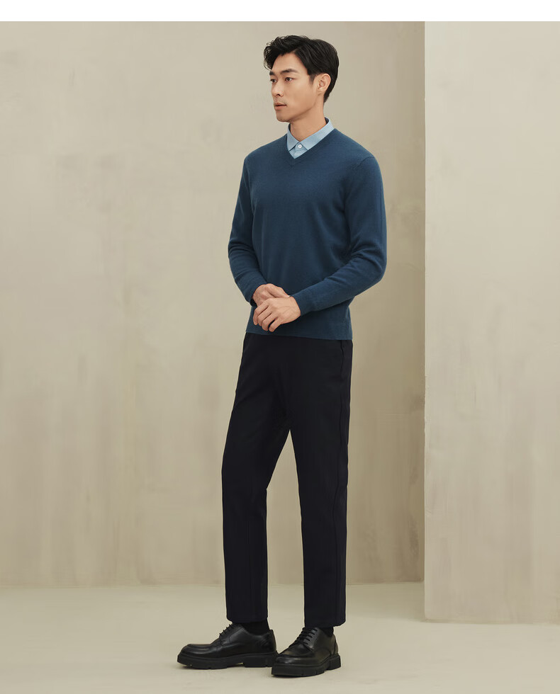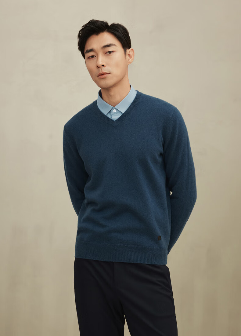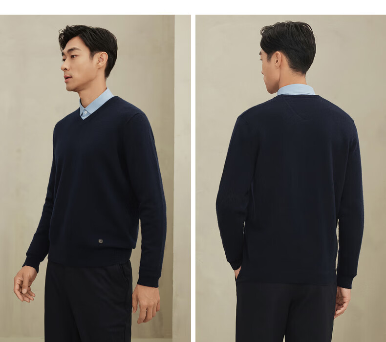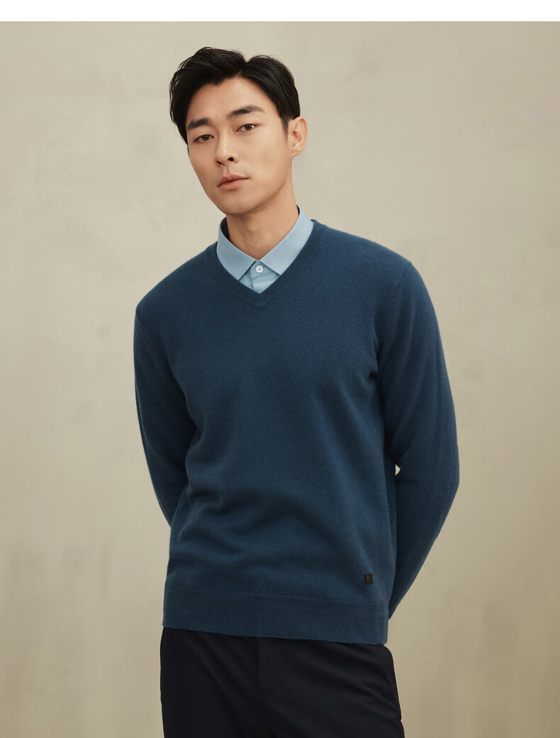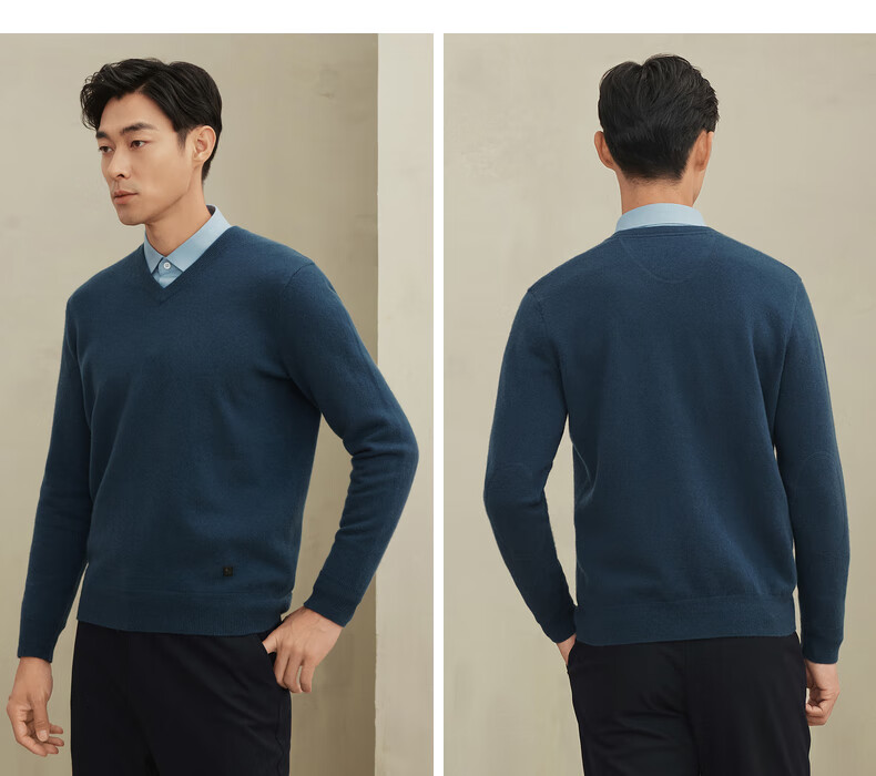 Ordos 1980 Antibacterial Antistatic Autumn and Winter V-neck Thickened Casual Men's Cashmere Sweater 1980 Blue XL 180/100A