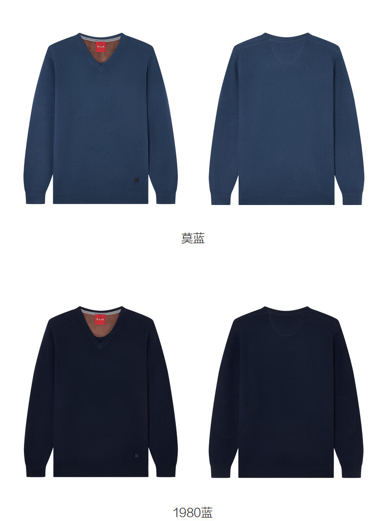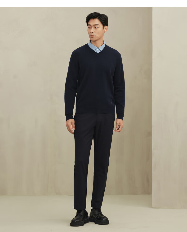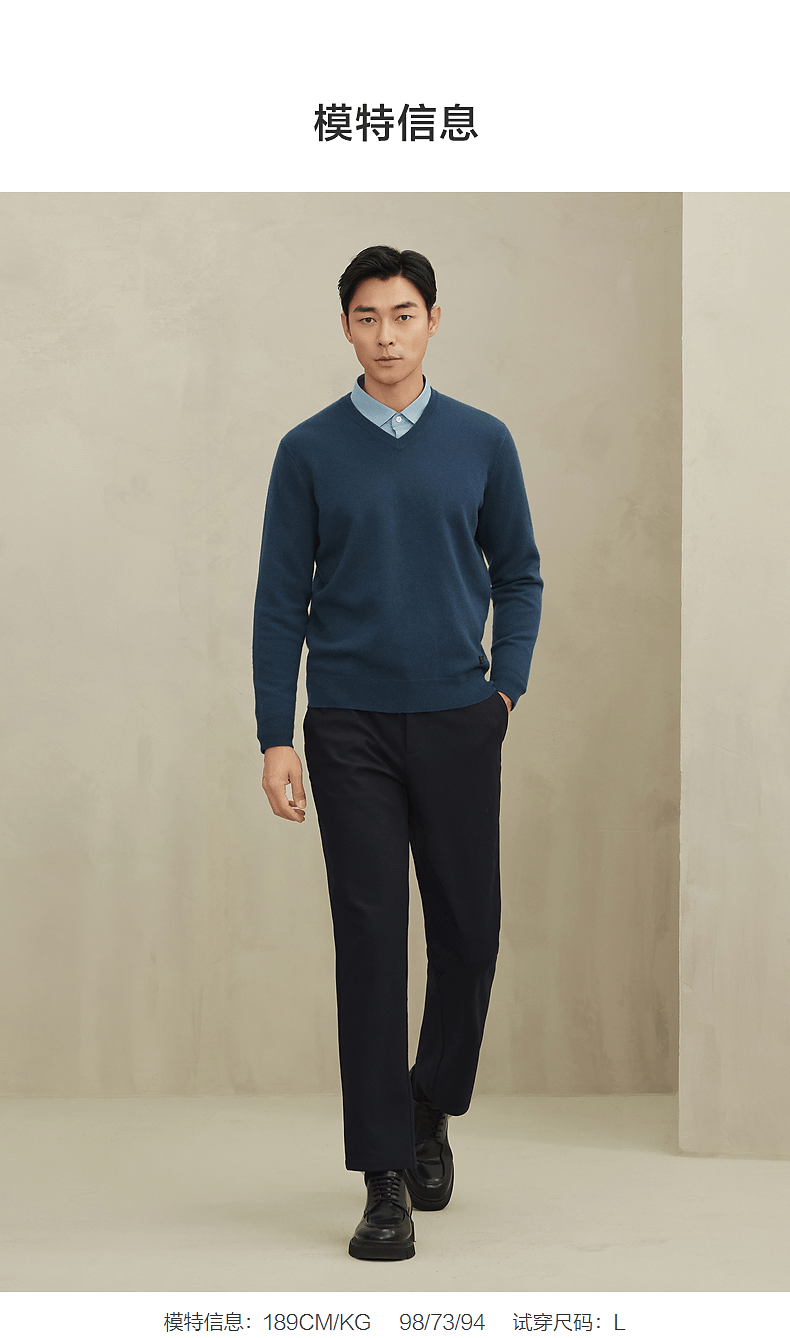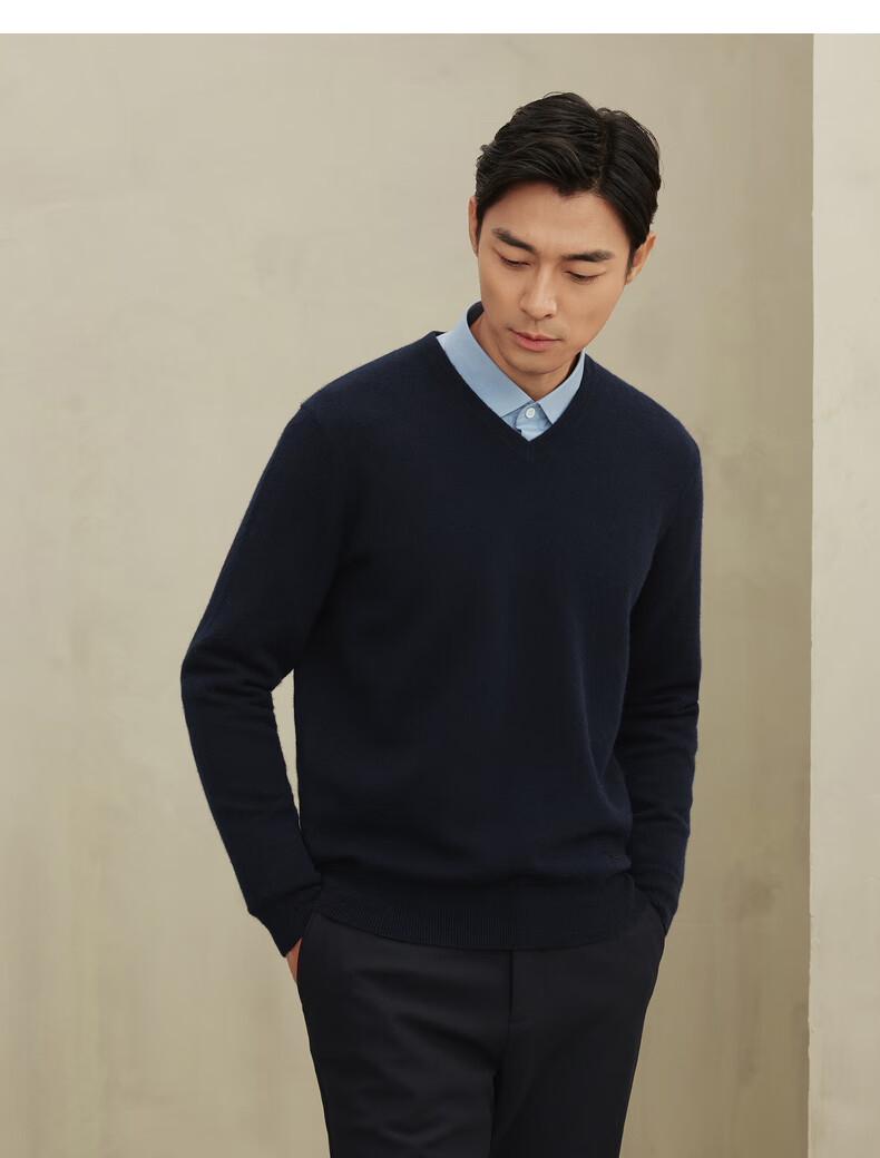 Ordos 1980 Antibacterial Antistatic Autumn and Winter V-neck Thickened Casual Men's Cashmere Sweater 1980 Blue XL 180/100A