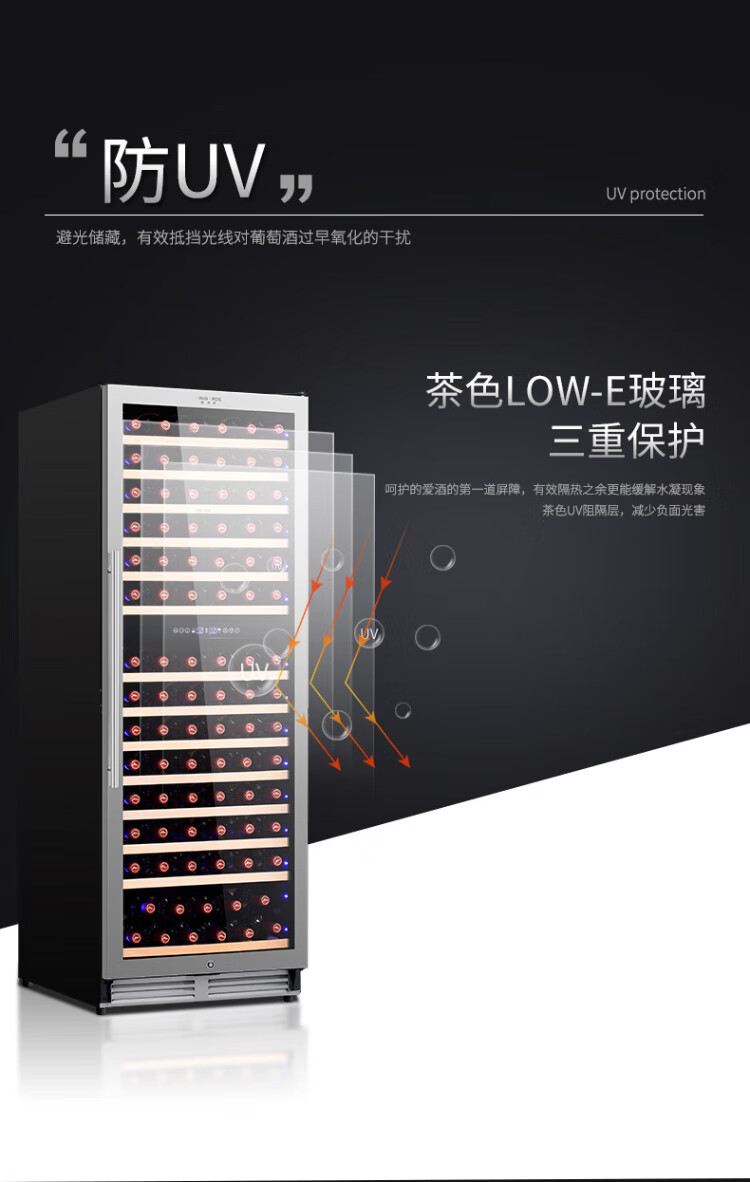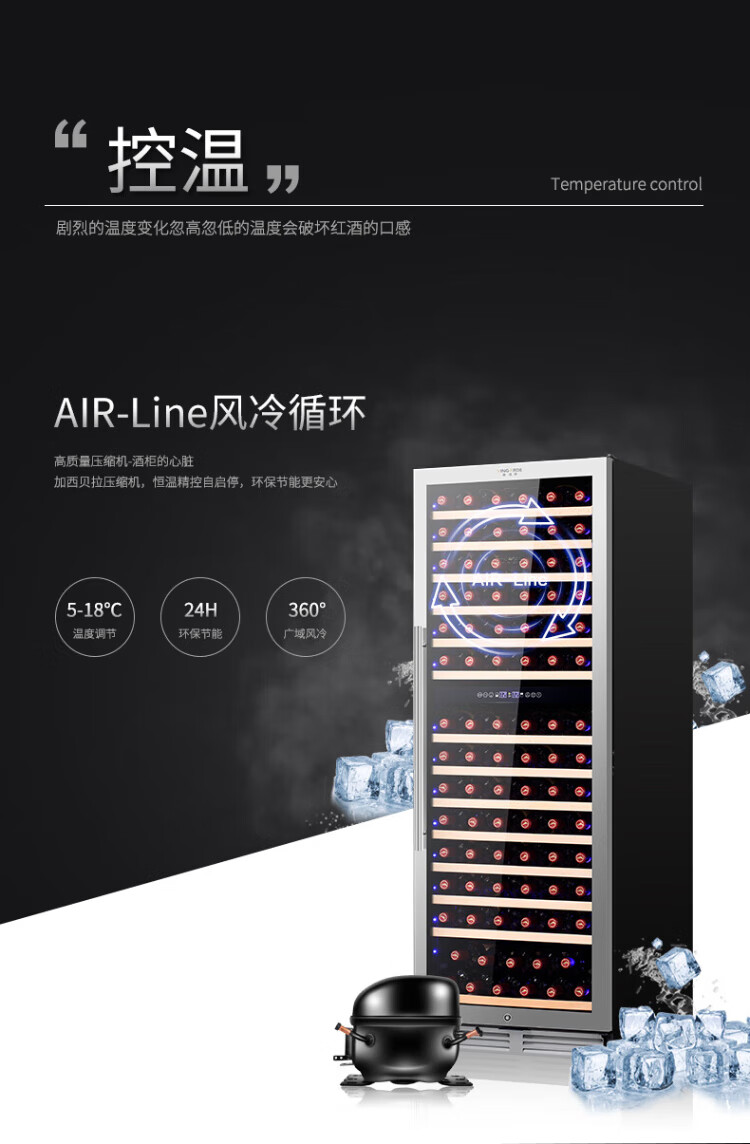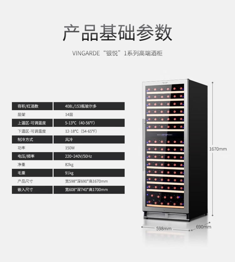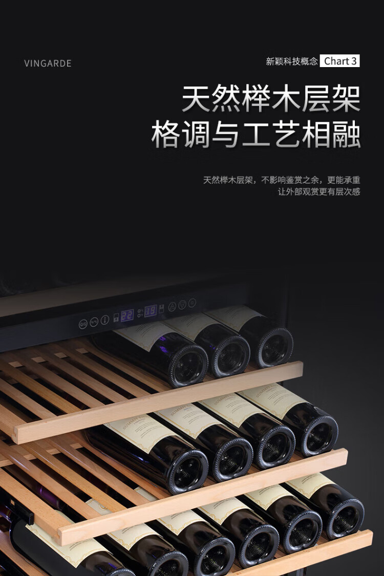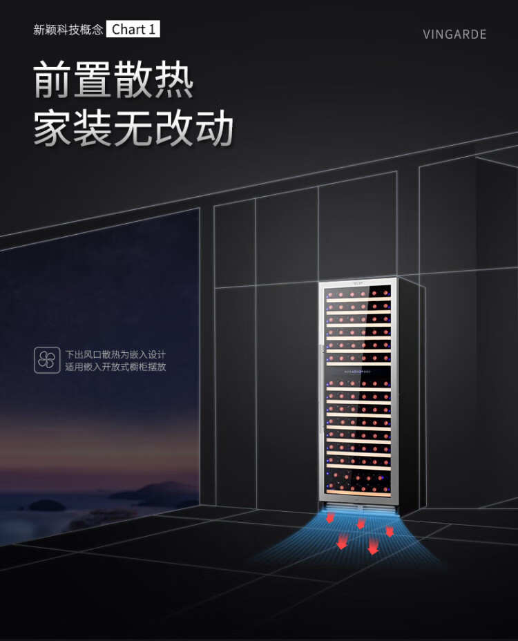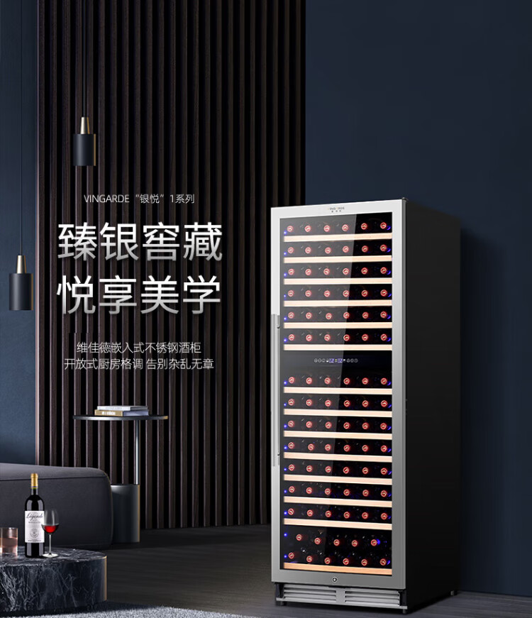 VINGARDE wine cabinet constant temperature wine cabinet embedded household dual temperature wine cabinet ice bar compressor air-cooled frost-free bar winery wine beverage constant temperature moisturizing refrigerator CH-165 single door double temperature - full glass door 154 bottles 1.67 meters 408L