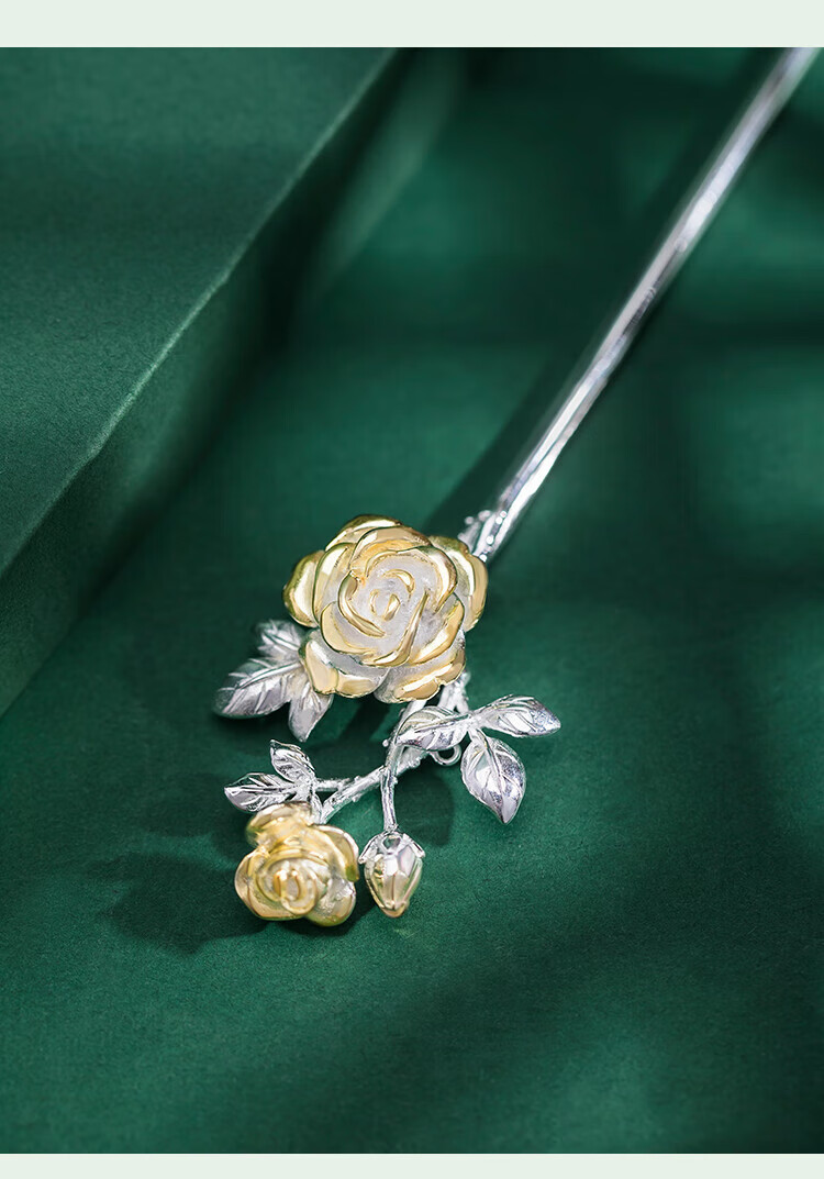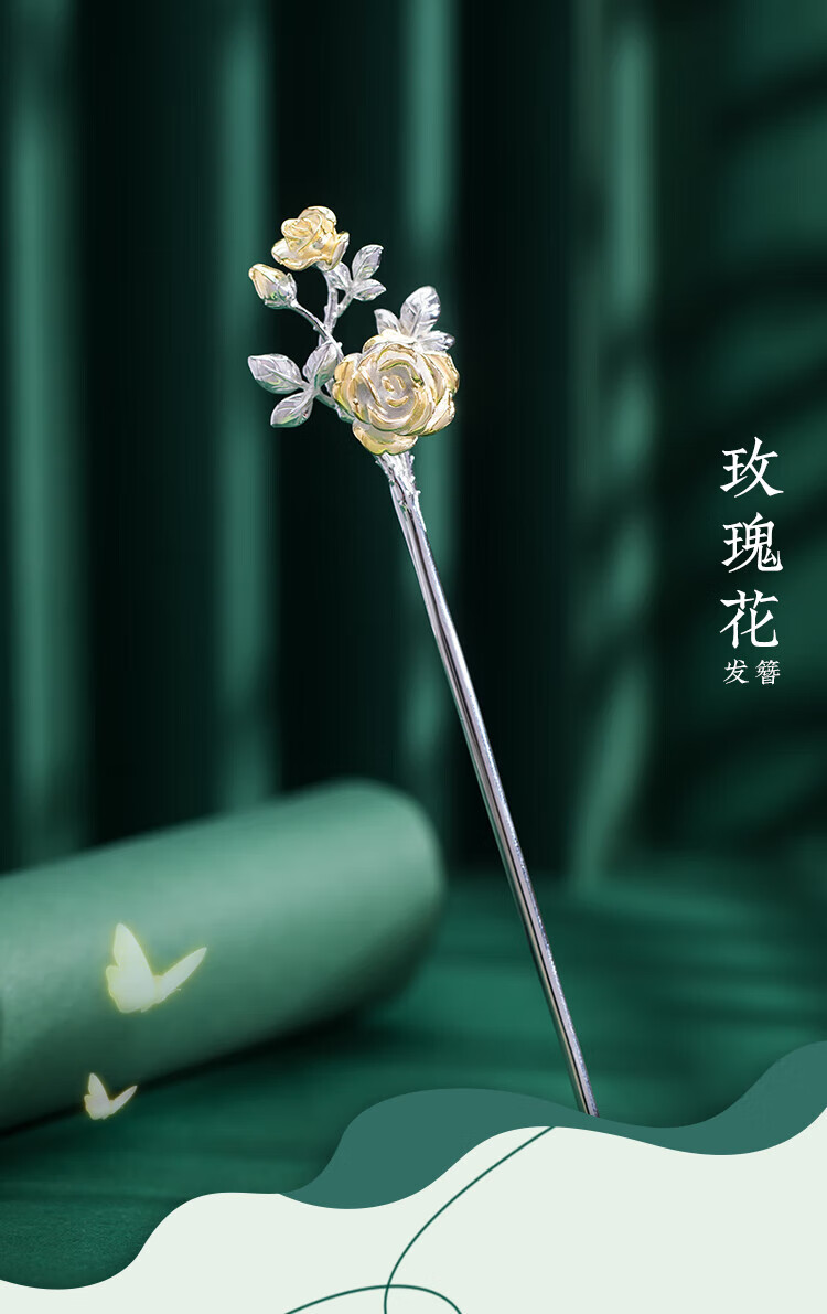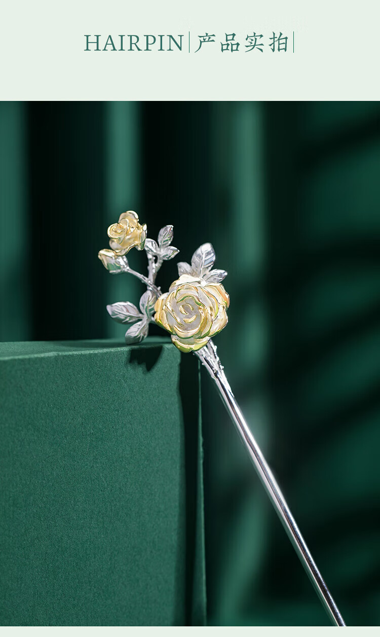 Enchanting Cat S925 sterling silver hairpin, ancient style hairpin, new Chinese style hairpin, step-shaking hairpin, ladies birthday gift, practical girl, S925 silver rose hairpin, certificate + gift box