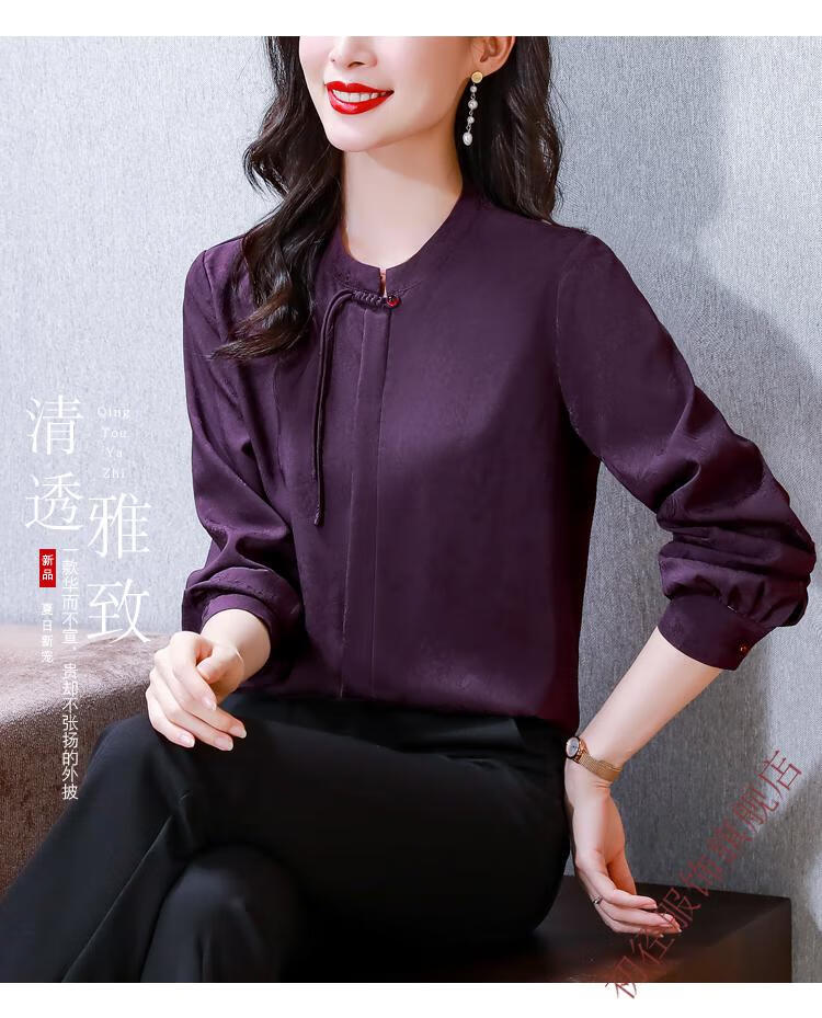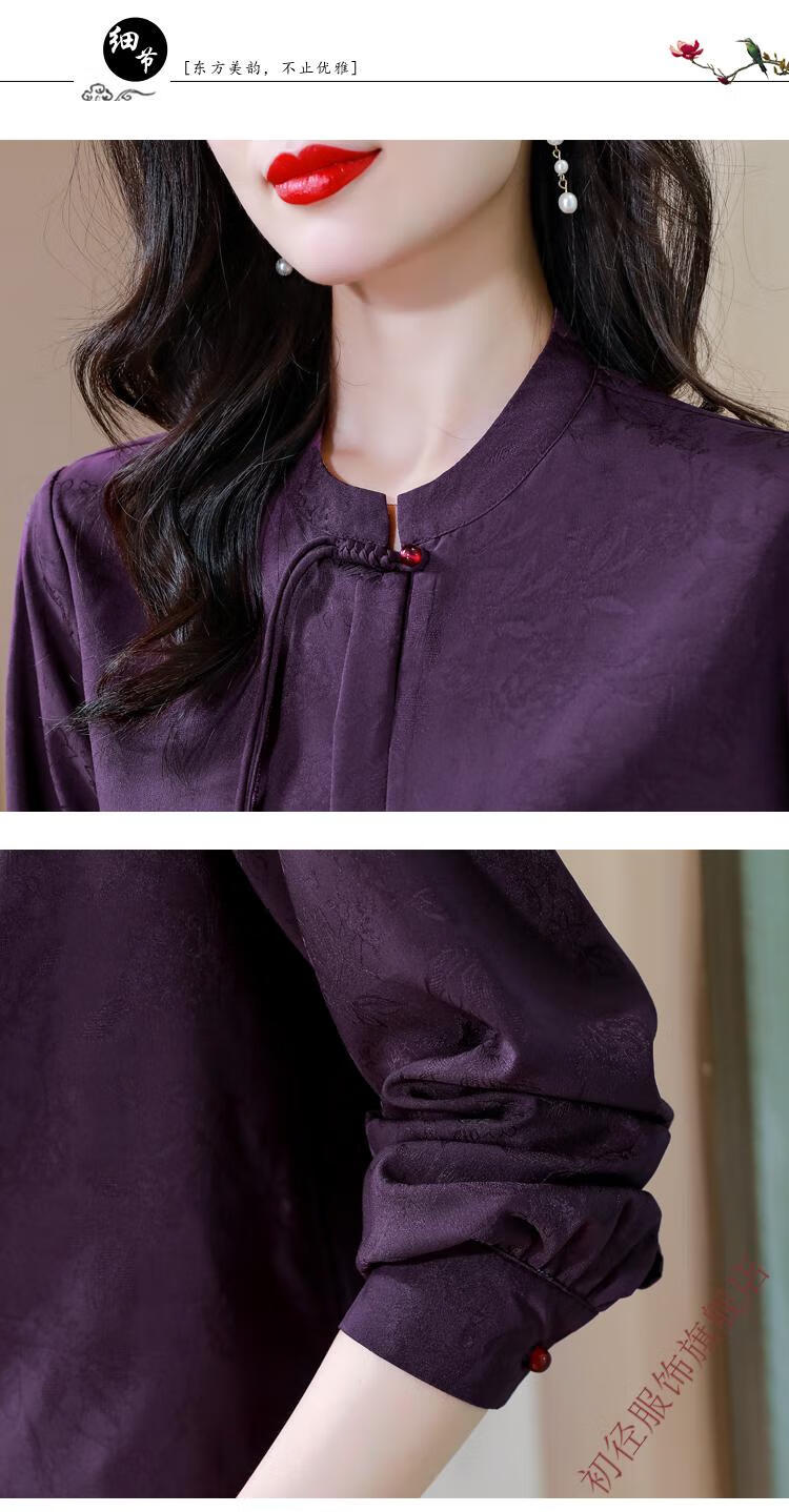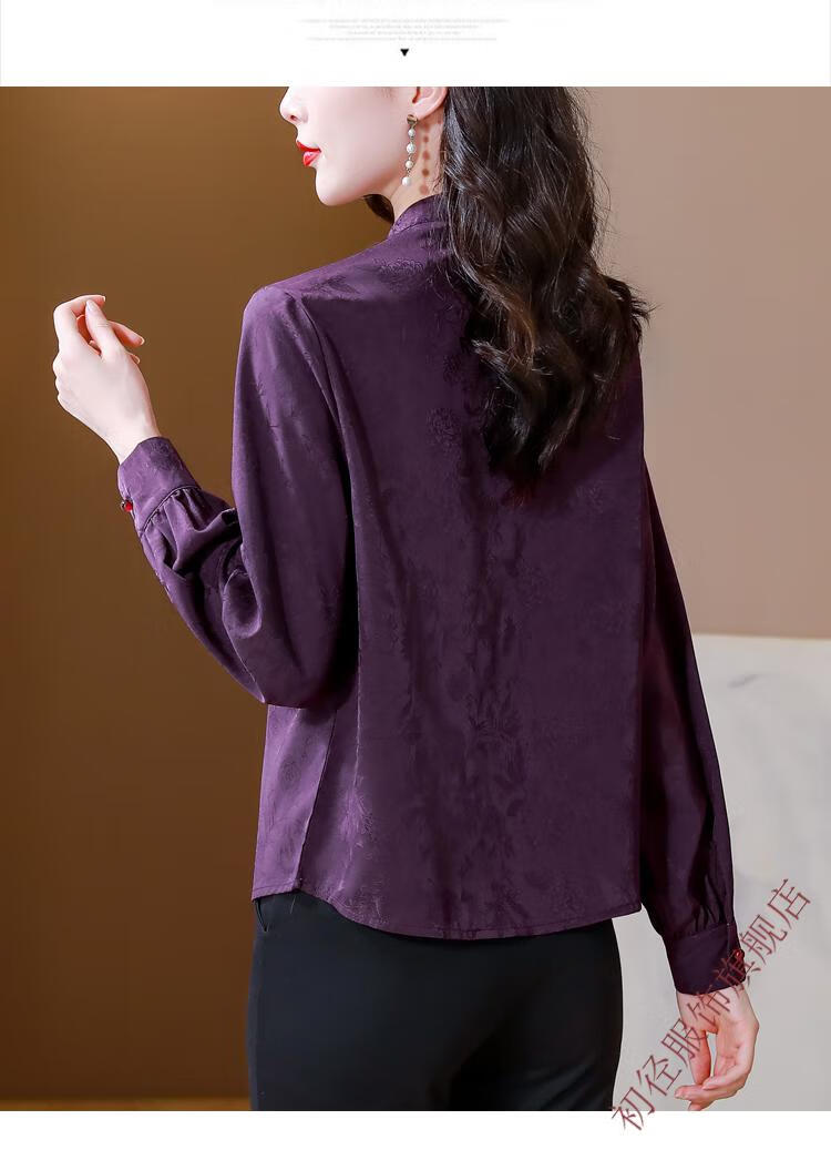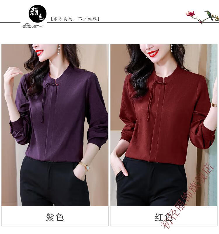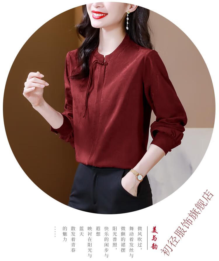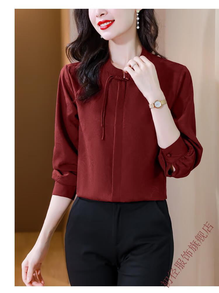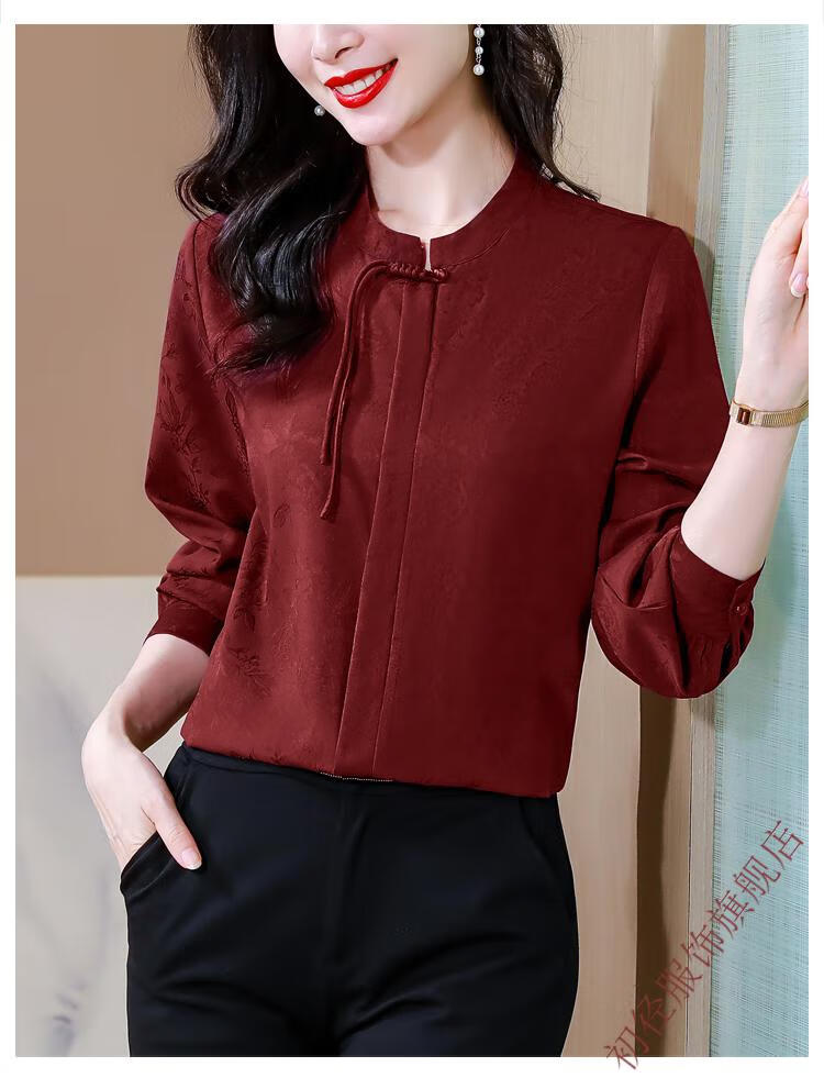 Chu Jing new Chinese style button-up long-sleeved shirt spring and autumn tops women's shirts 2025 new mother high-end chiffon shirt red M 80-100Jin Jin is equal to 0.5 kg