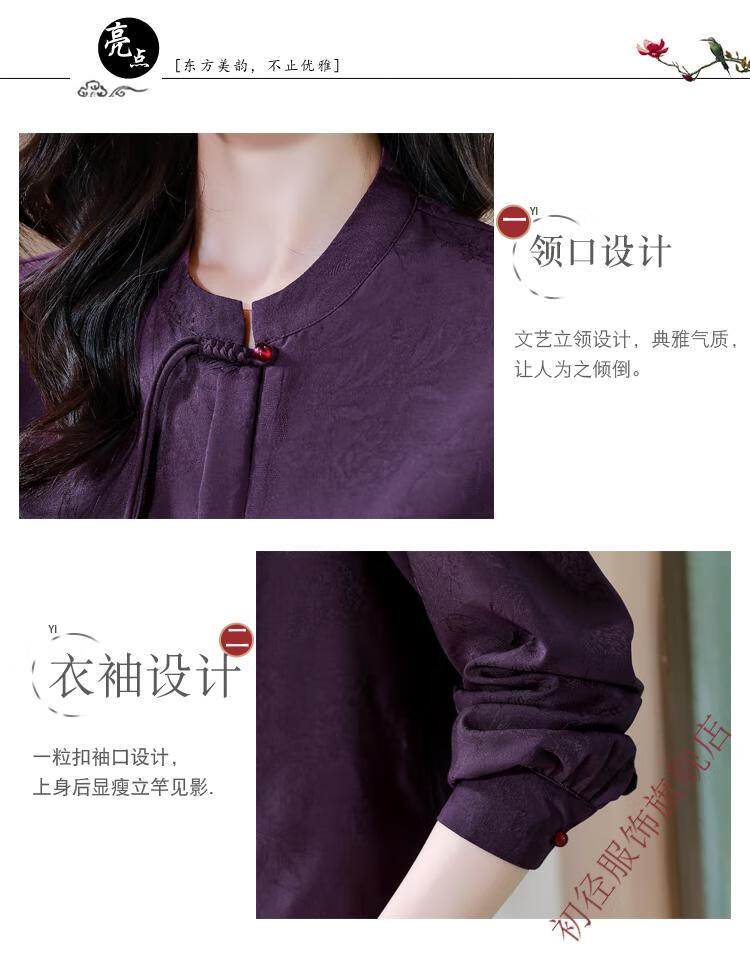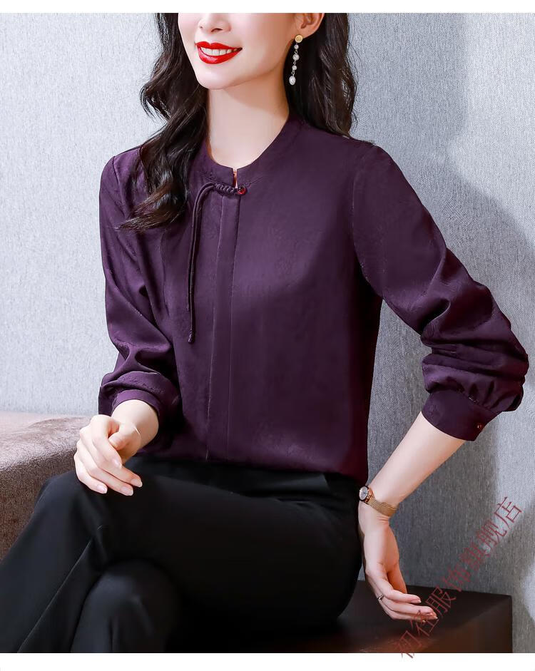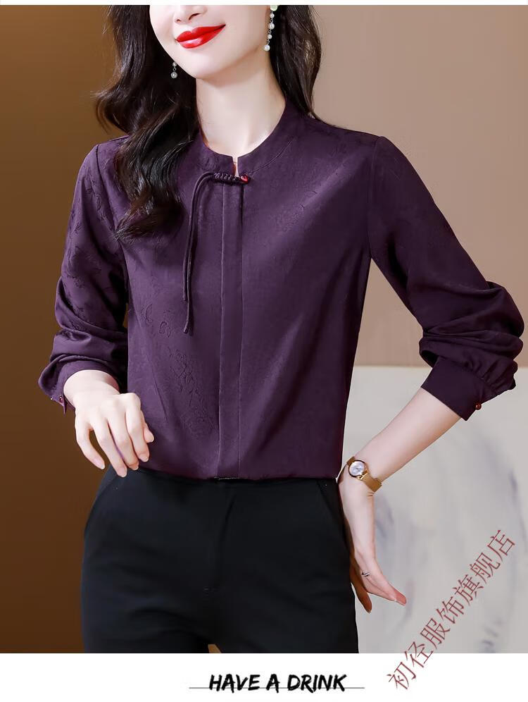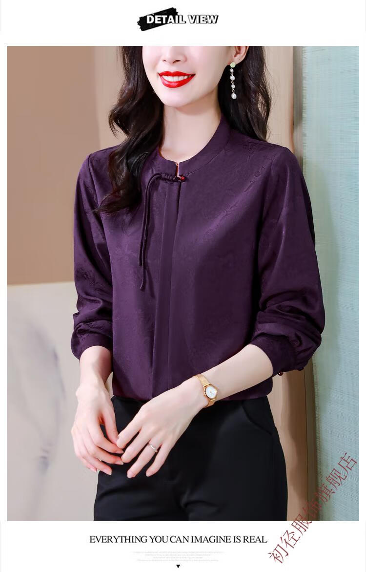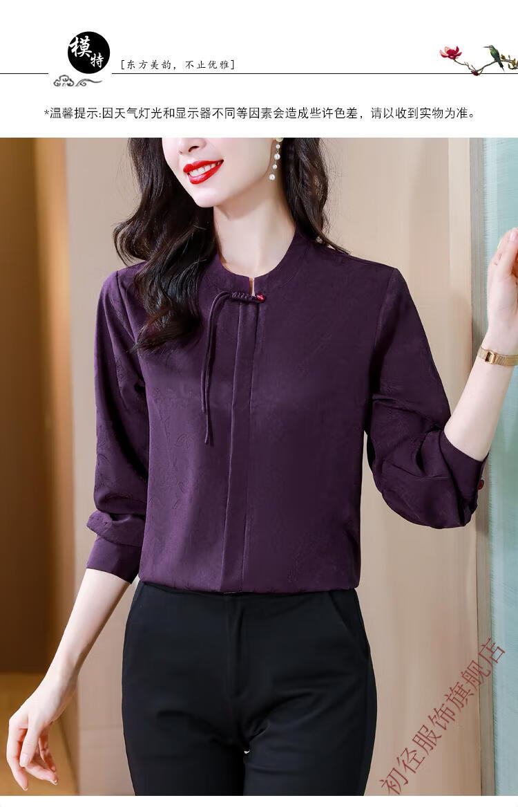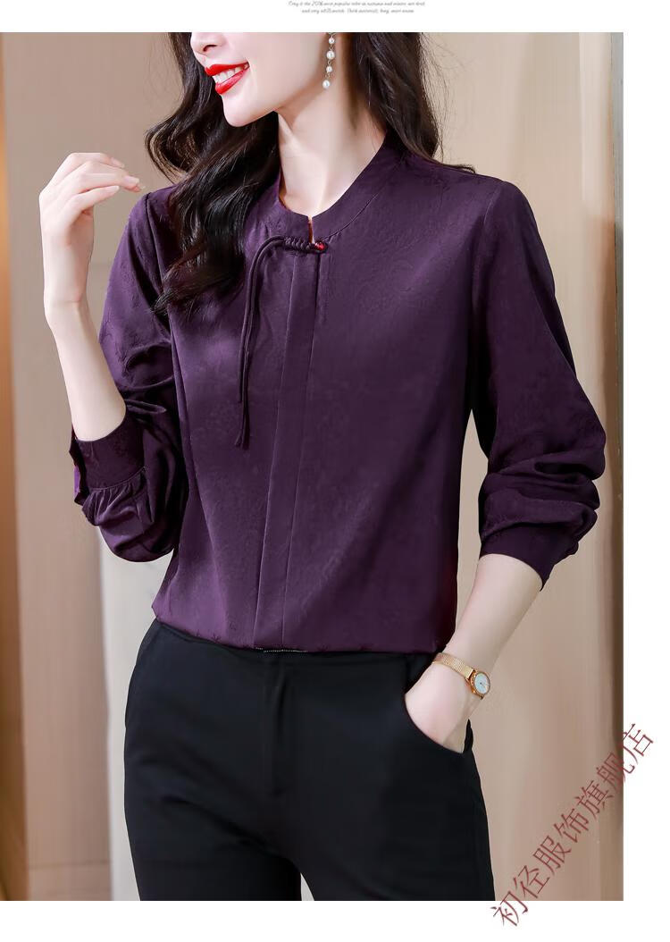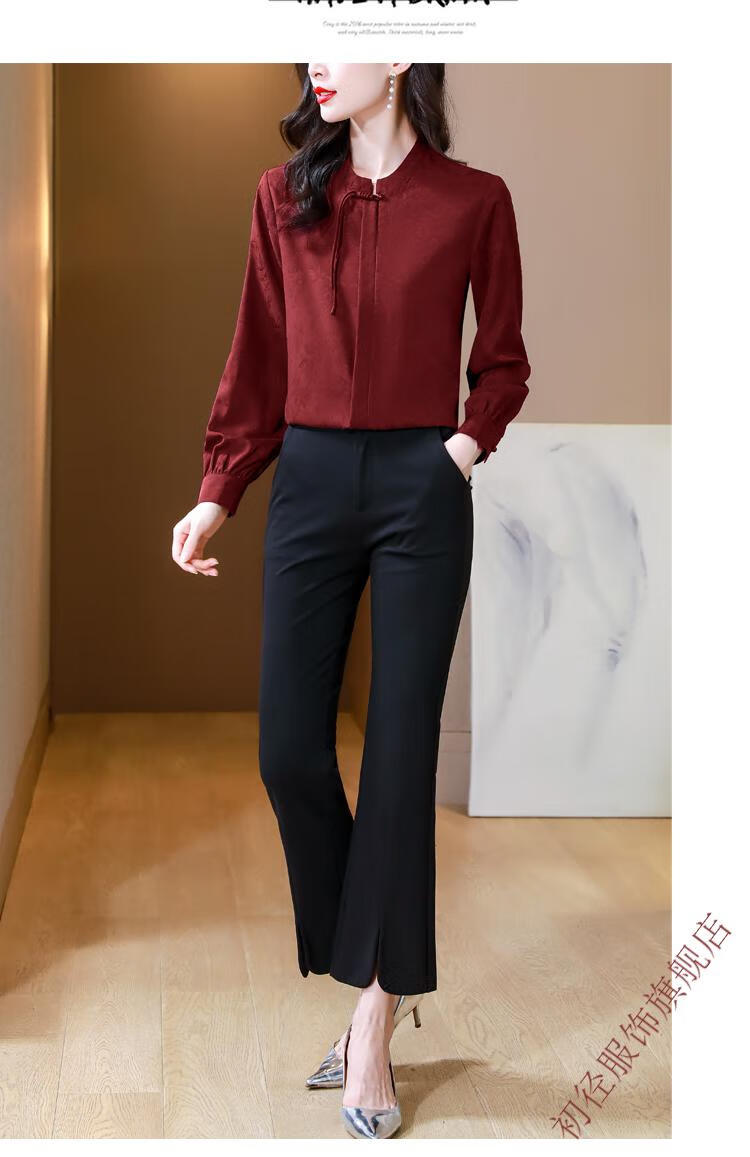 Chu Jing new Chinese style button-up long-sleeved shirt spring and autumn tops women's shirts 2025 new mother high-end chiffon shirt red M 80-100Jin Jin is equal to 0.5 kg