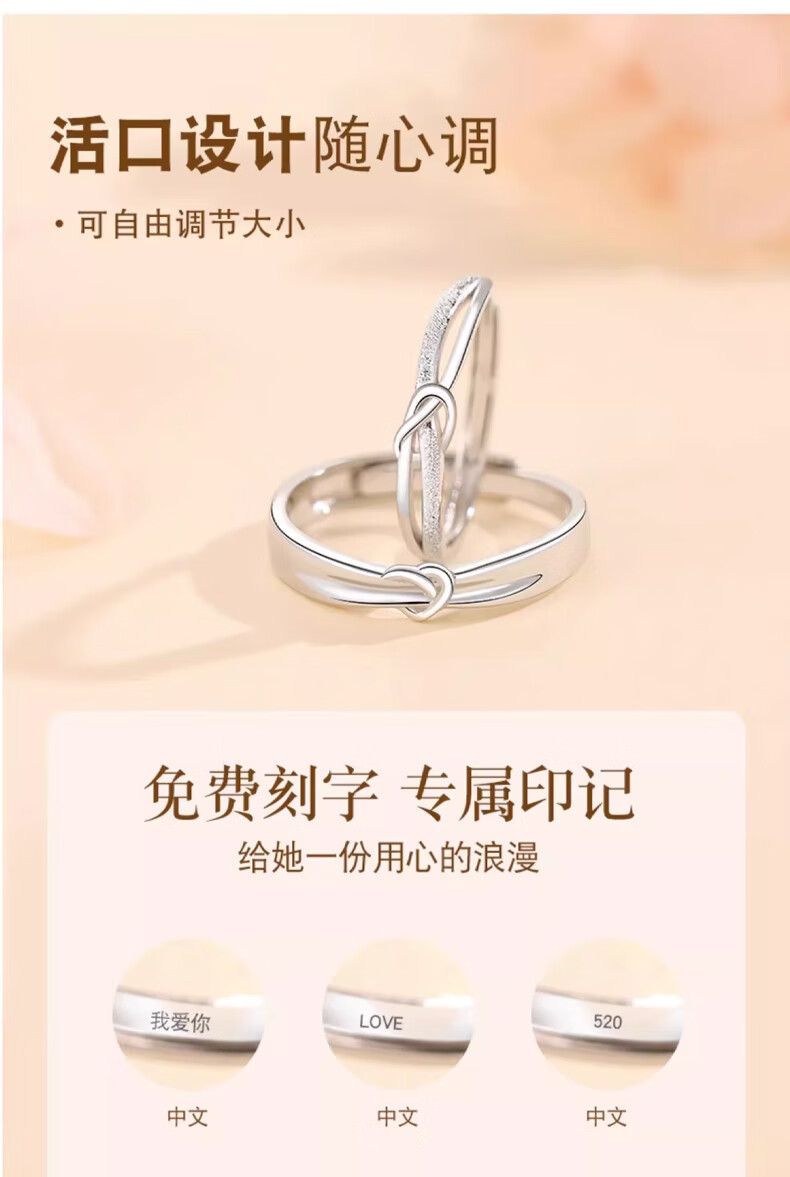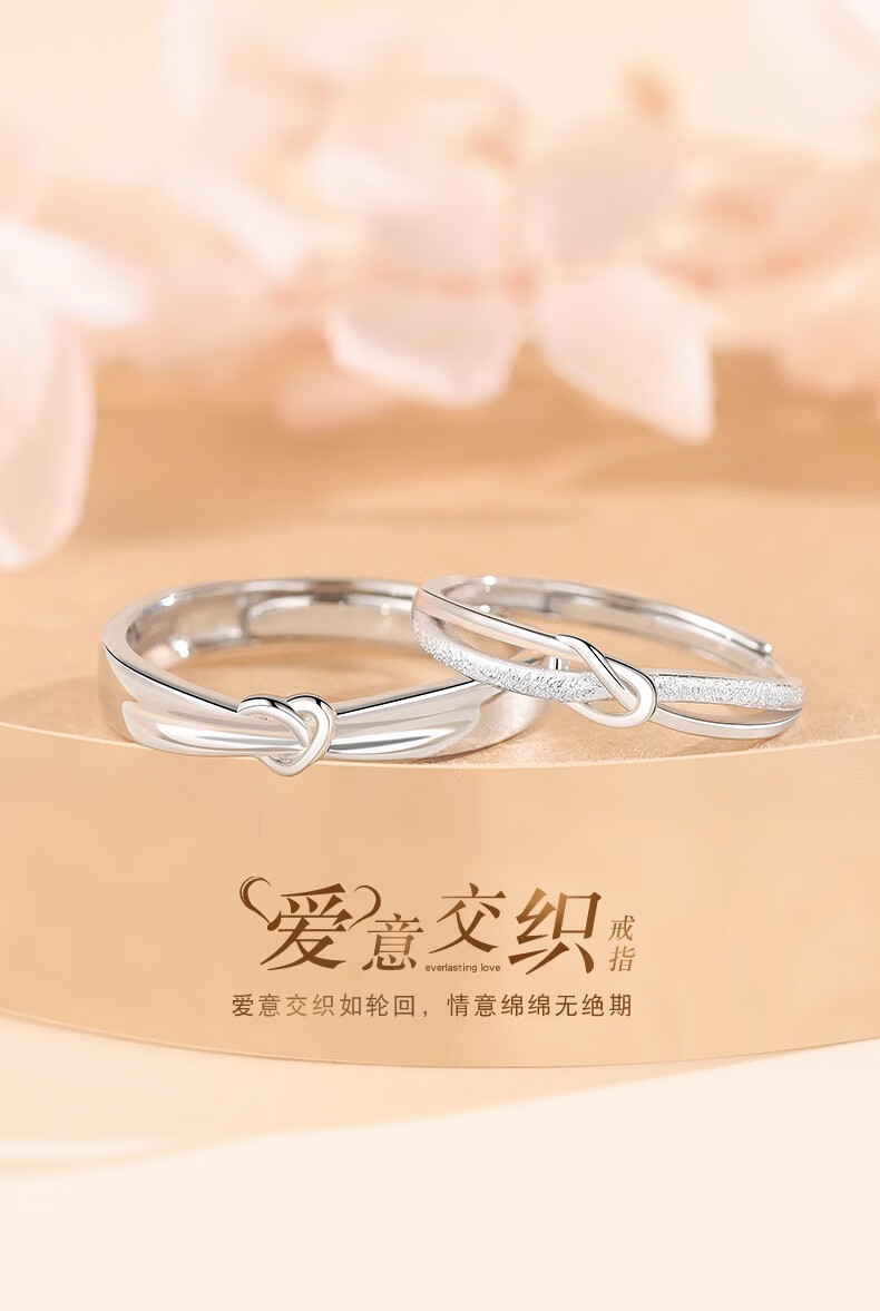 Chinese gold love intertwined couple rings, a pair of silver wedding rings for marriage, birthday gift for girlfriend, wife, wedding anniversary, love intertwined couple rings, Jingsuda