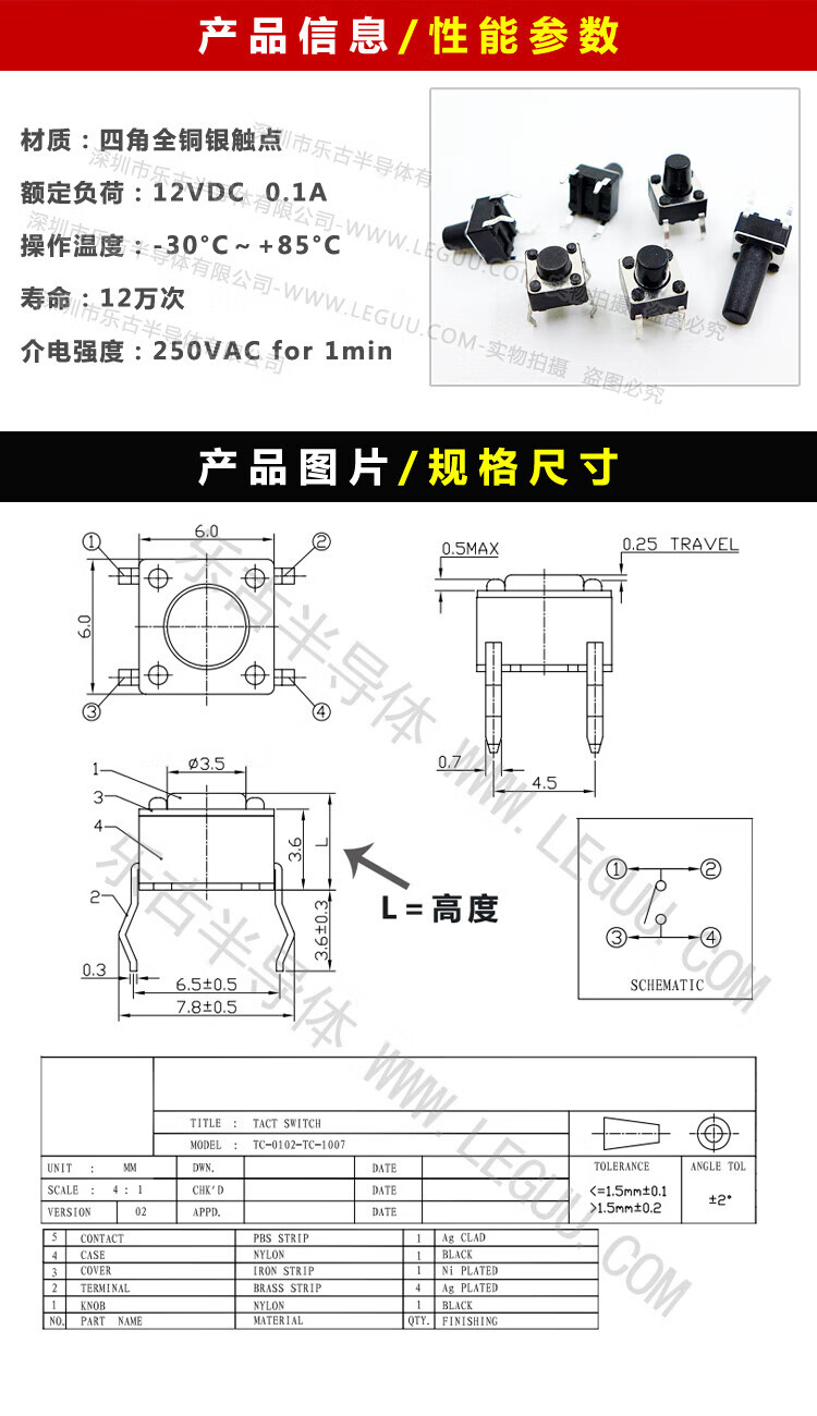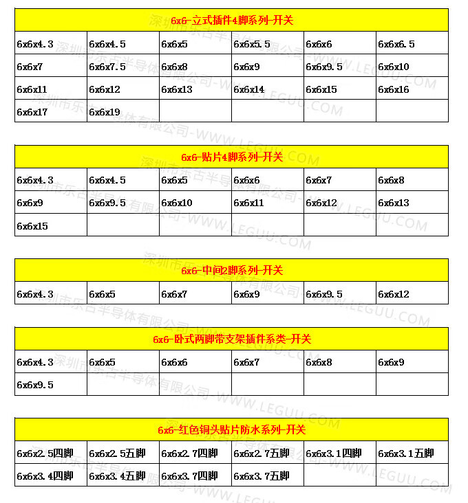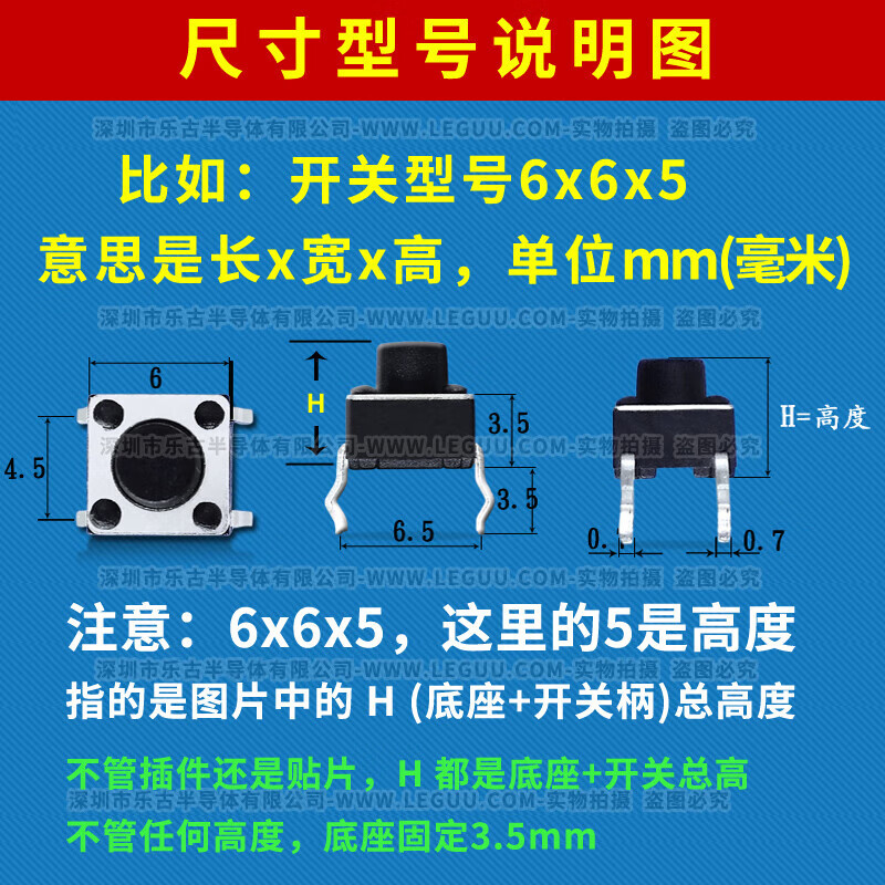 Yu Mengzhe micro switch key switch light touch switch button induction cooker 4-legged vertical 6*6*5/6/7/8/9/10/17 6*6*9=50 pieces