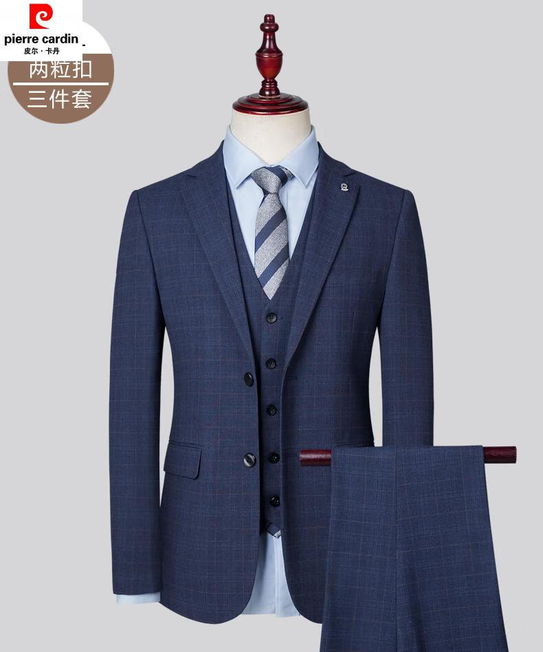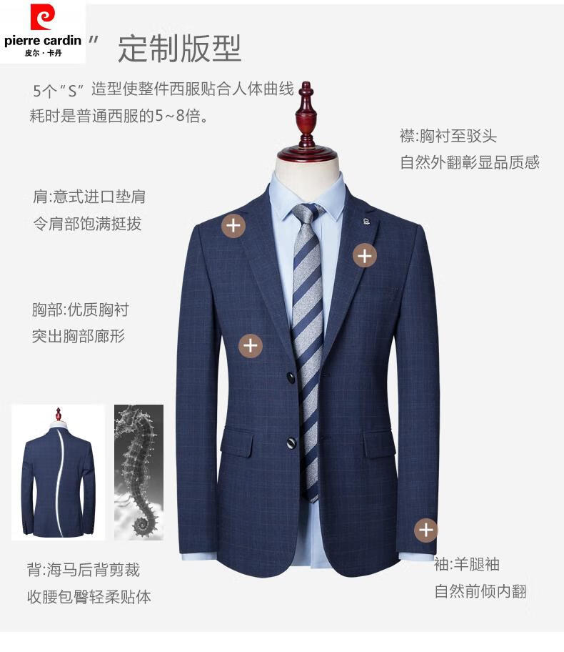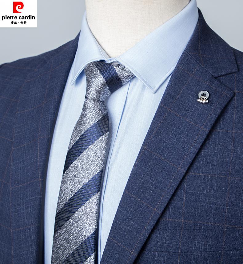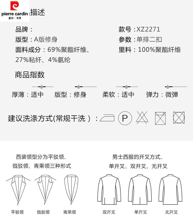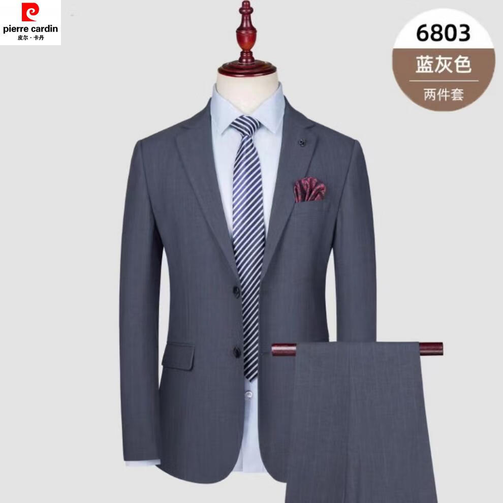 Pierre Cardin Men's Summer Suit New Business Thin Suit Suit Casual Formal Suit Korean Slim Dress Complete Set 6802 Two-piece Set Two Buttons Double Slits XL 180 135-150Jin Jin equals 0.5 kg