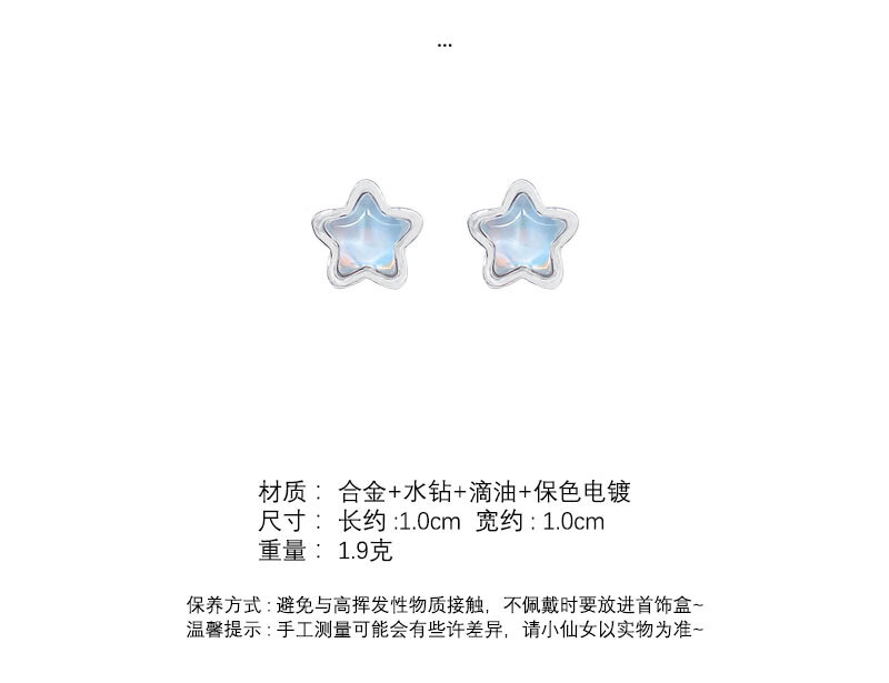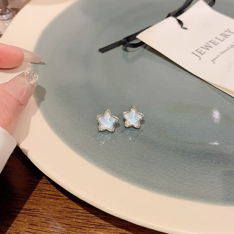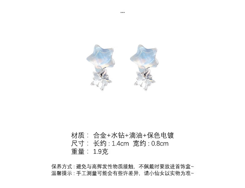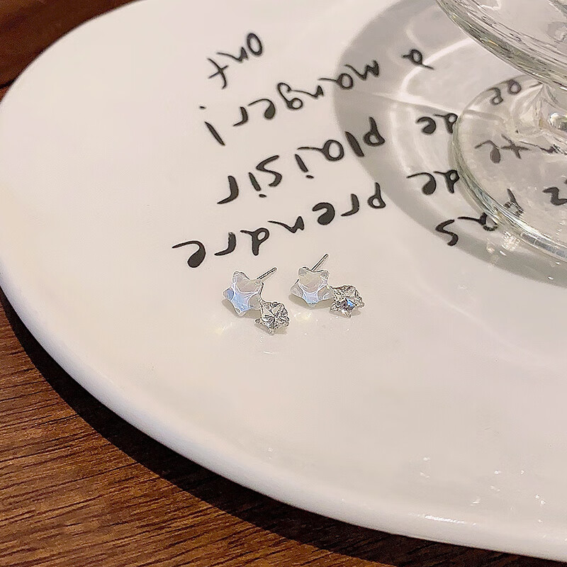 Gradient blue five-pointed star earrings for women, niche design, Korean style, versatile and temperament earrings, 2024 new style, two five-pointed stars, one pair