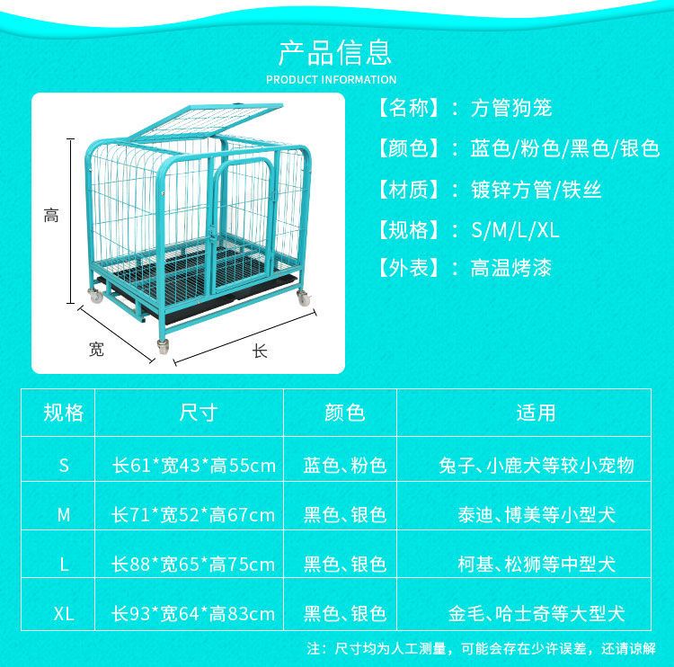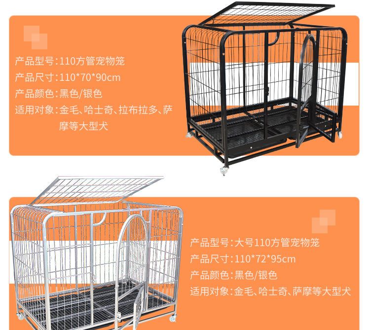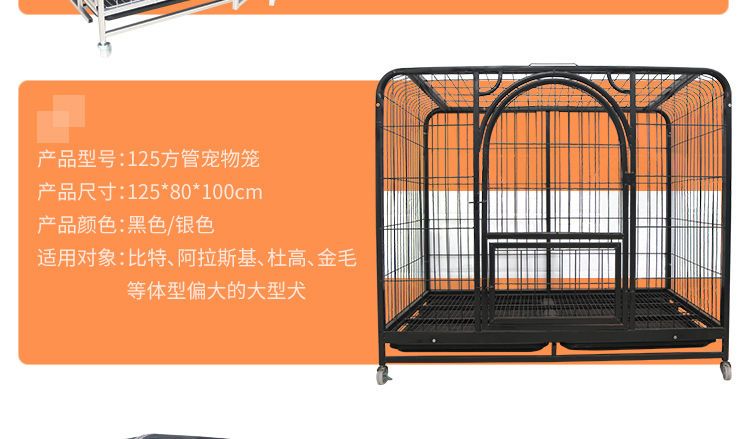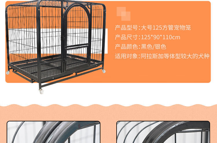 JPHZNB Large Dog Alaskan Extra Large Dog Cage Golden Retriever Samoyed Husky Small and Medium-sized Dog Teddy Bichon Dog Cage New Product Square Tube 125*80*90cm Standard (With Tray Color Random)