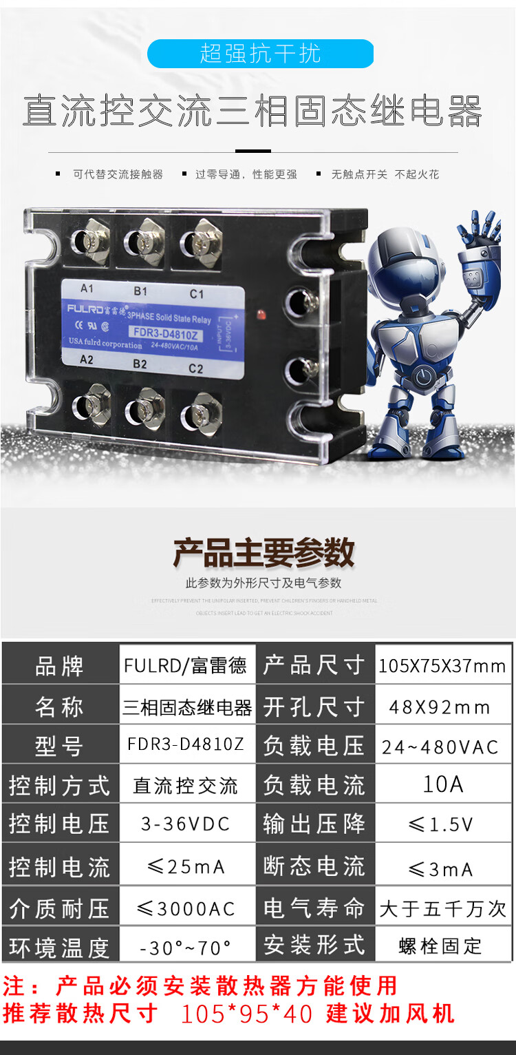 Three-phase solid state relay 10A JGX-3 SSR-3 032 3810Z FULRD FDR3-D4810Z FDR3-D4810Z