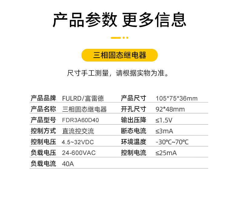 Frederic three-phase solid state relay FDR3A60D40 DC24V controlled 380V AC SSR3-25DA FDR3A60D80 (80A) DC controlled AC