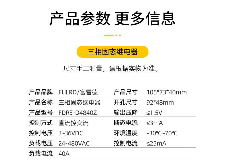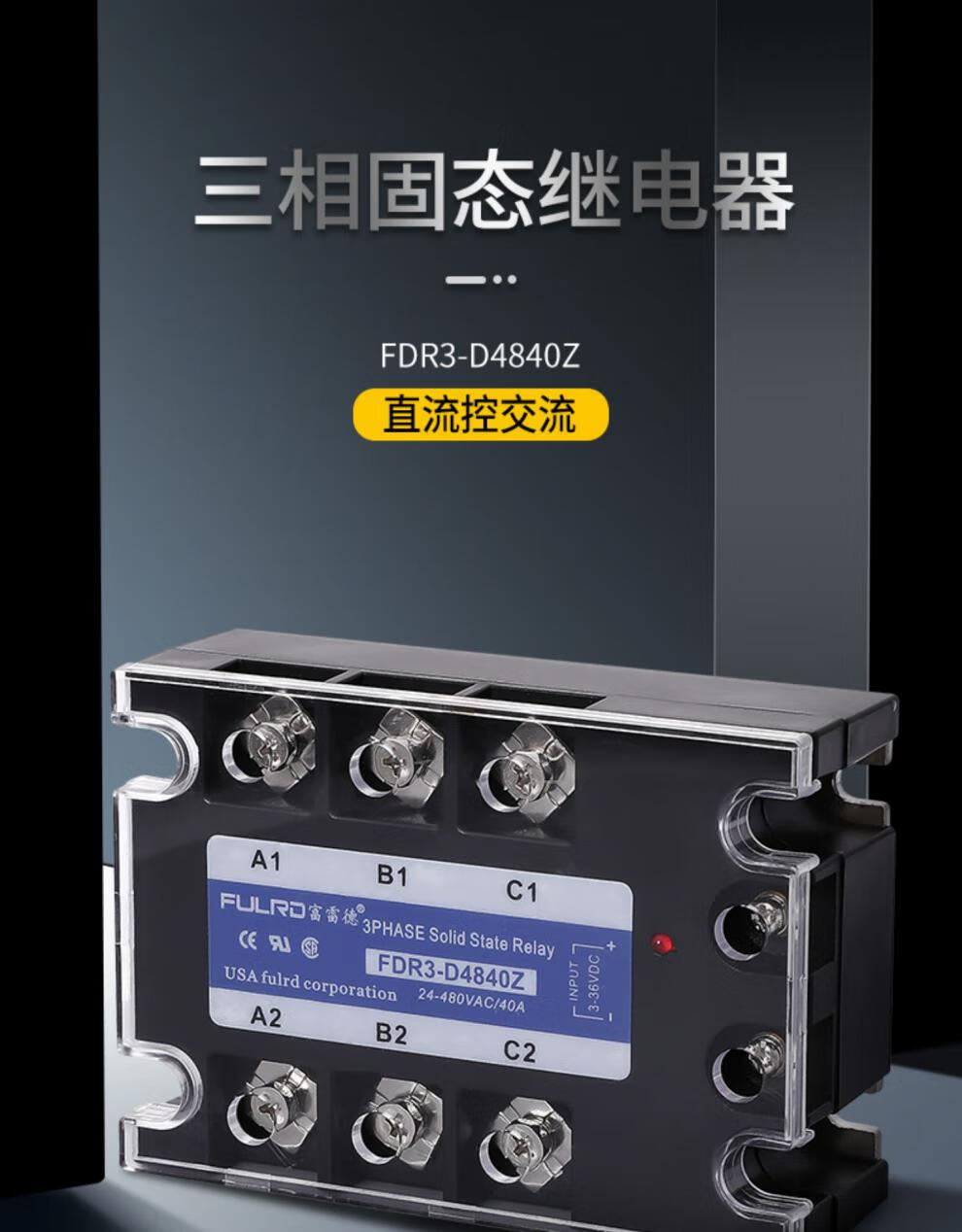 Three-phase solid state relay FDR3-D4840Z DC control AC DC12V24V control 380VSSR-25DA40A FDR3A60D120 double flip upgrade 120A