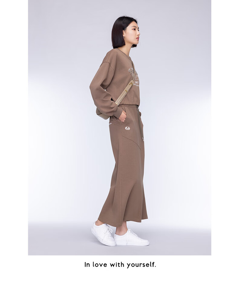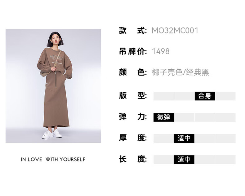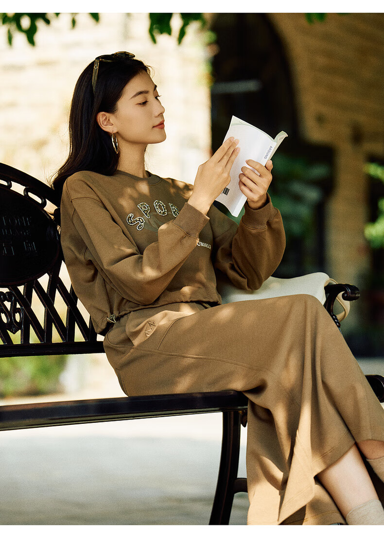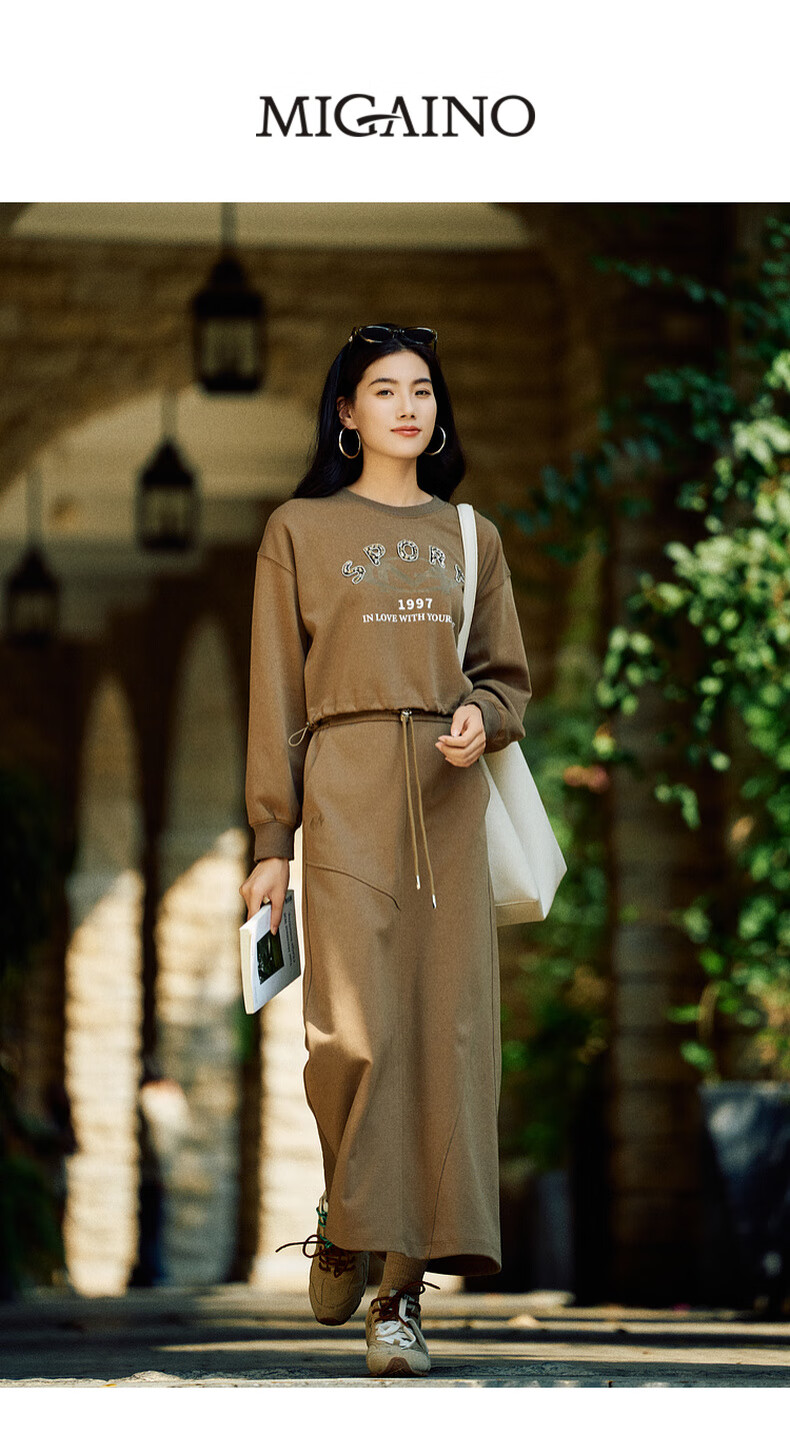 MIGAINO Women's 2025 Autumn New Urban Light Outdoor Sweatshirt Half Skirt Casual Sports Suit MO32MC001 Coconut Shell Color 160/84A/M