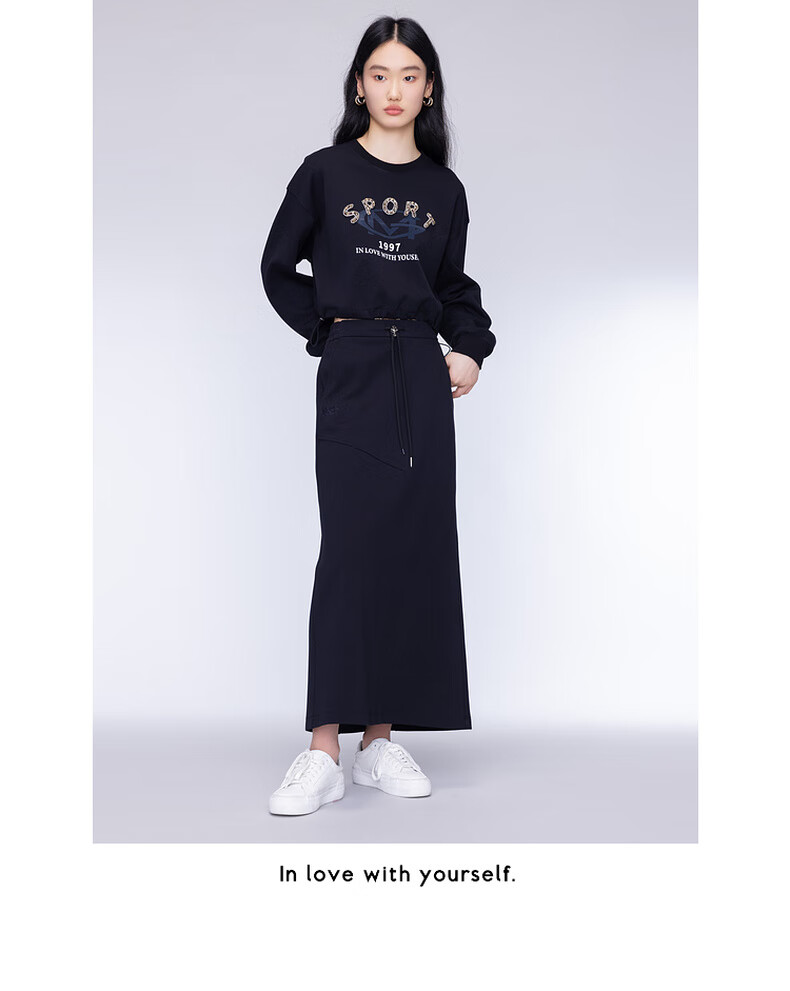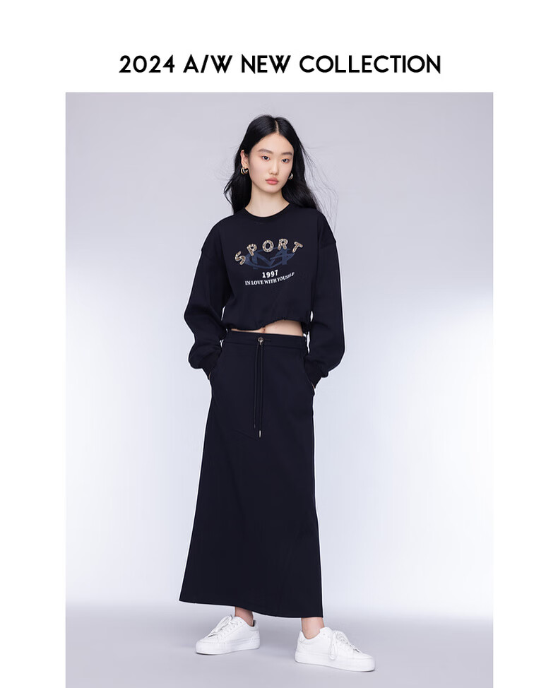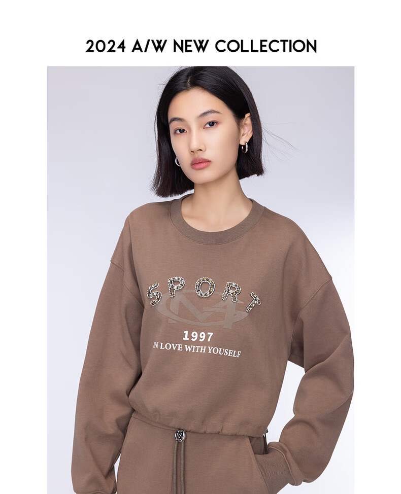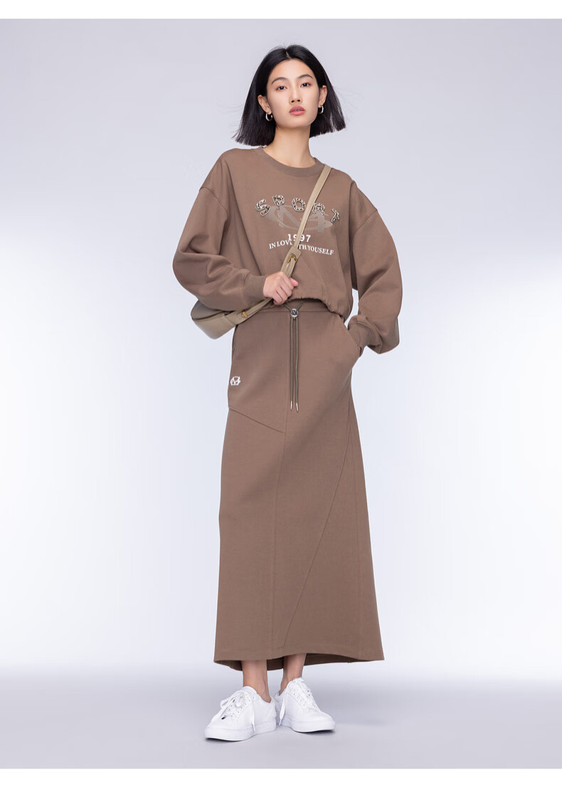 MIGAINO Women's 2025 Autumn New Urban Light Outdoor Sweatshirt Half Skirt Casual Sports Suit MO32MC001 Coconut Shell Color 160/84A/M