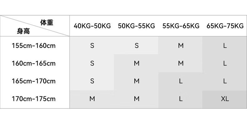 China (cm) 160-165/84-86 165-170 / 88-90 167-172 / 92-96 168-173 / 98-102 170-176 / 106-110