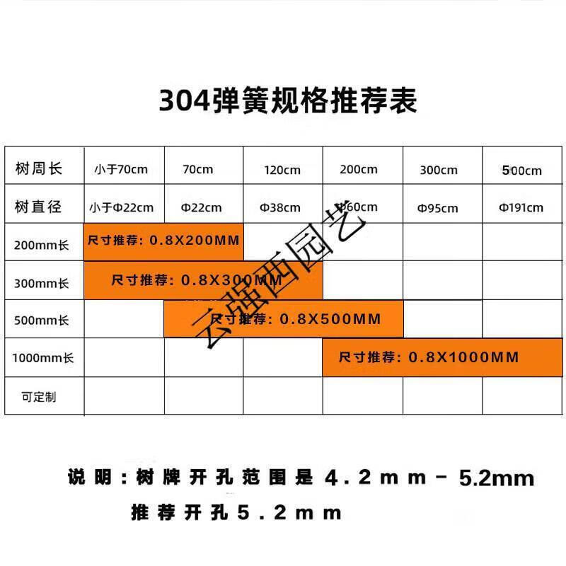 Stainless steel tree sign spring tension spring rope hanging chain stainless steel material retractable without damaging the tree sign sign customization stainless steel 0.8*100CM spring with one screw 0x0cm