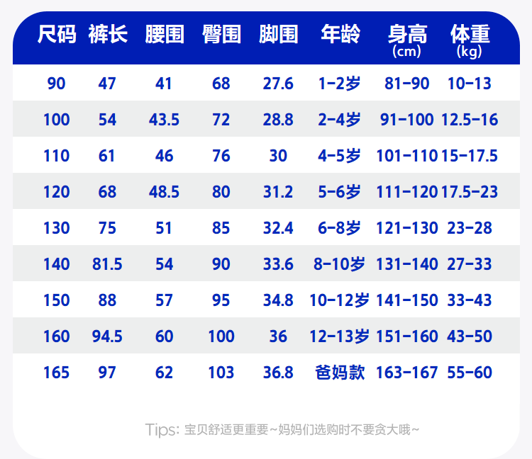 China (cm) 160-165/84-86 165-170 / 88-90 167-172 / 92-96 168-173 / 98-102 170-176 / 106-110
