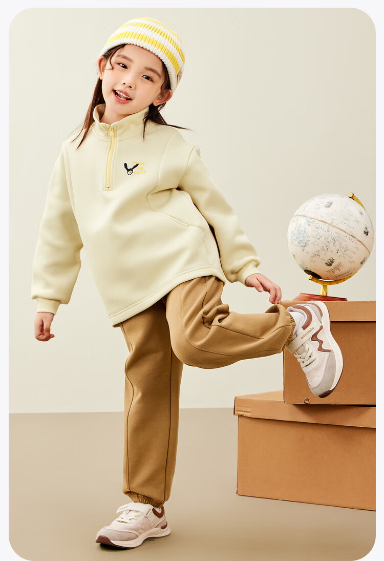 Mini Bala mini parent-child jumping pants for boys and girls loose high elastic sports pants autumn light khaki 50311 165
