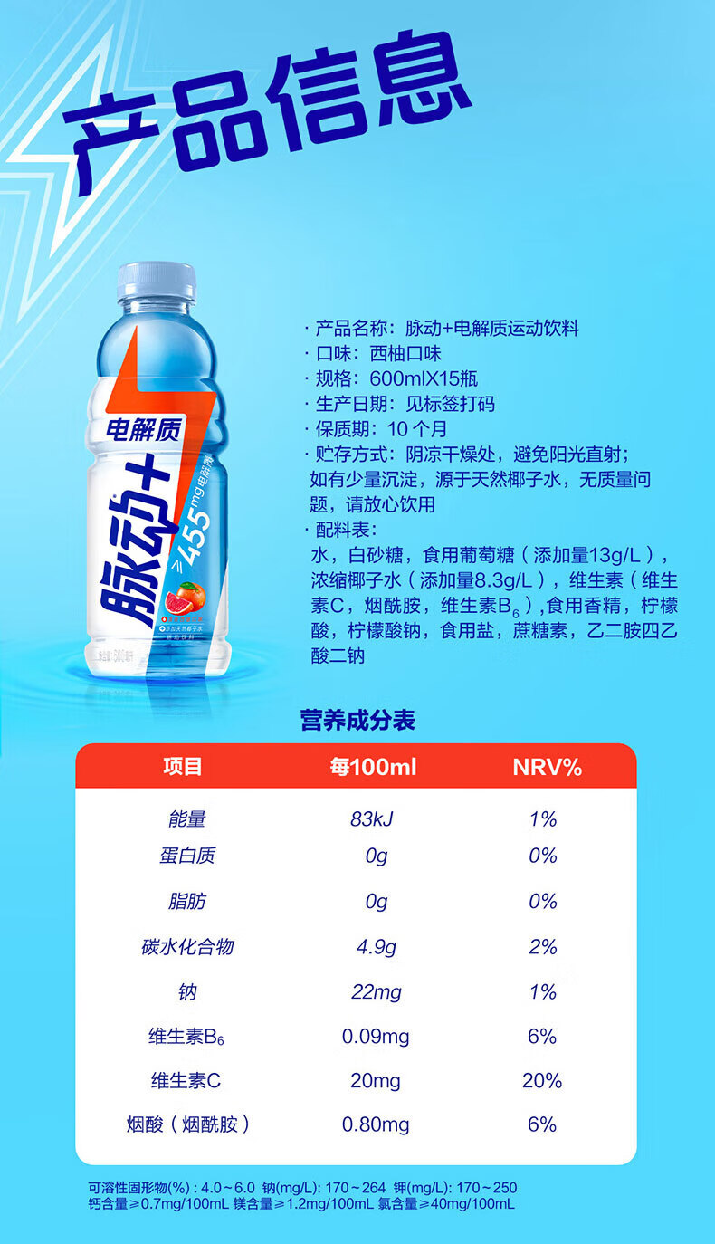 Mizone electrolyte sports drink 600ml*15 bottles full box grapefruit flavor electrolyte sports drink electrolyte grapefruit flavor 600ml*15 bottles/box