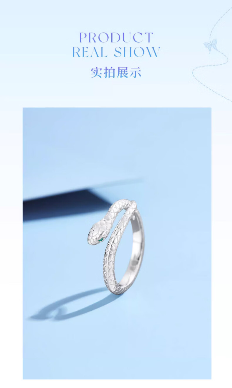 China Gold (CHINA GOLD) pure silver snake silver ring for women with light luxury and high-end sense, zodiac snake old Valentine's Day birthday gift for girlfriend and wife Jingsuda snake ring S999 silver