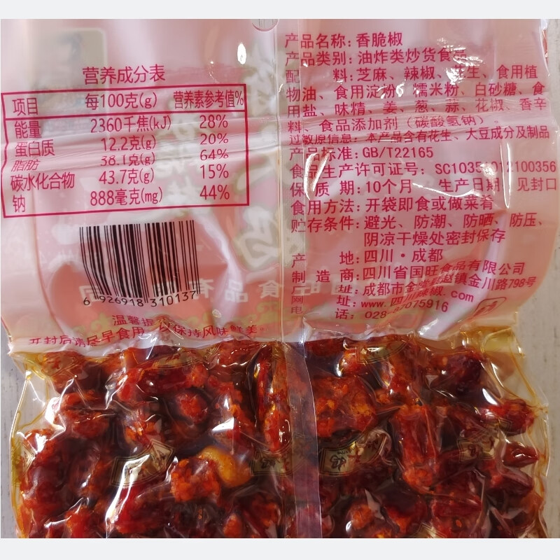 Aunt Chen Aunt Chen crispy pepper 400g Chengdu specialty sesame peanut crispy pepper snacks snacks snacks crispy pepper 400g*2 bags