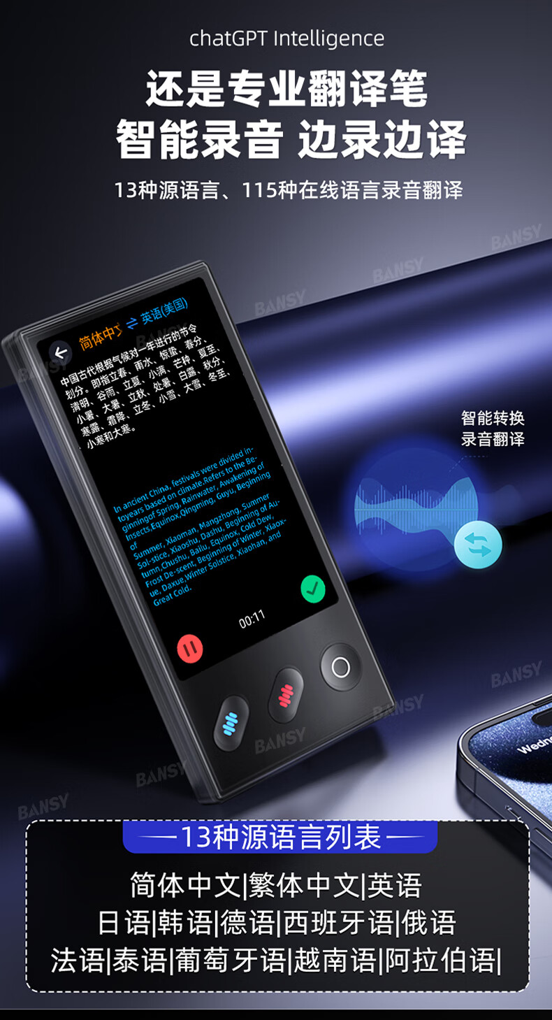 Bansy Offline Translator Simultaneous Interpretation Real-time Translator Travel Abroad 2025 Travel Translation Artifact Multi-Language Translation Business Meeting Recording Photo Translation Pen Exclusive Model - 5.0 Inch Video Call Translation - Offline Translation Study Abroad Business Negotiation Translation Artifact Supports 500 People Translating Online at the Same Time