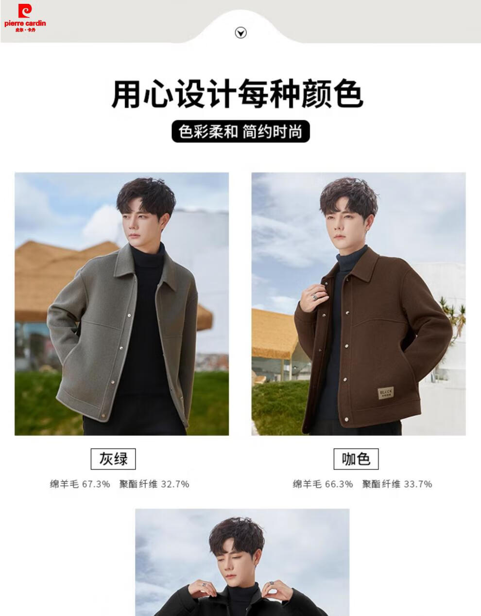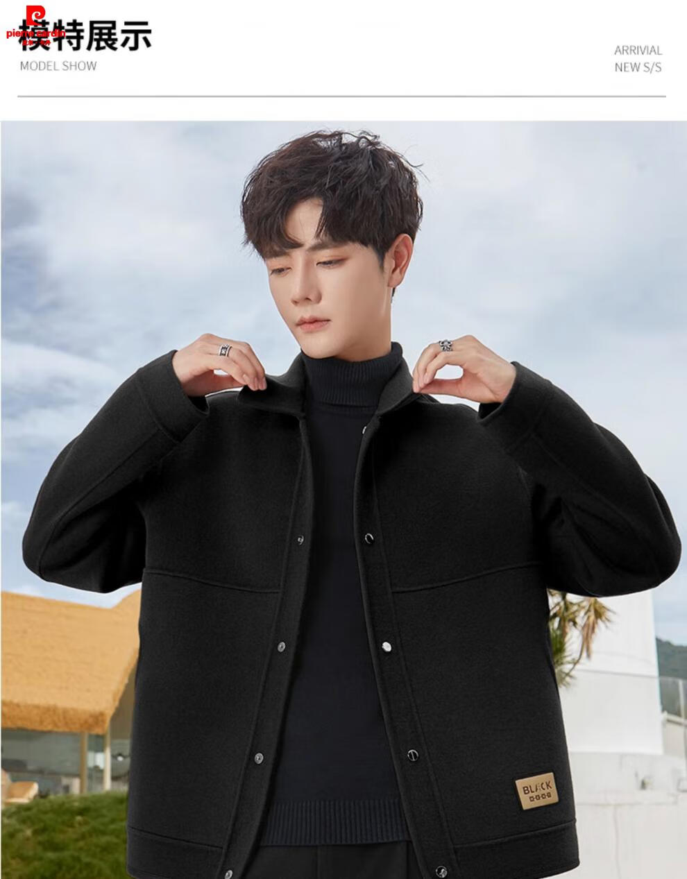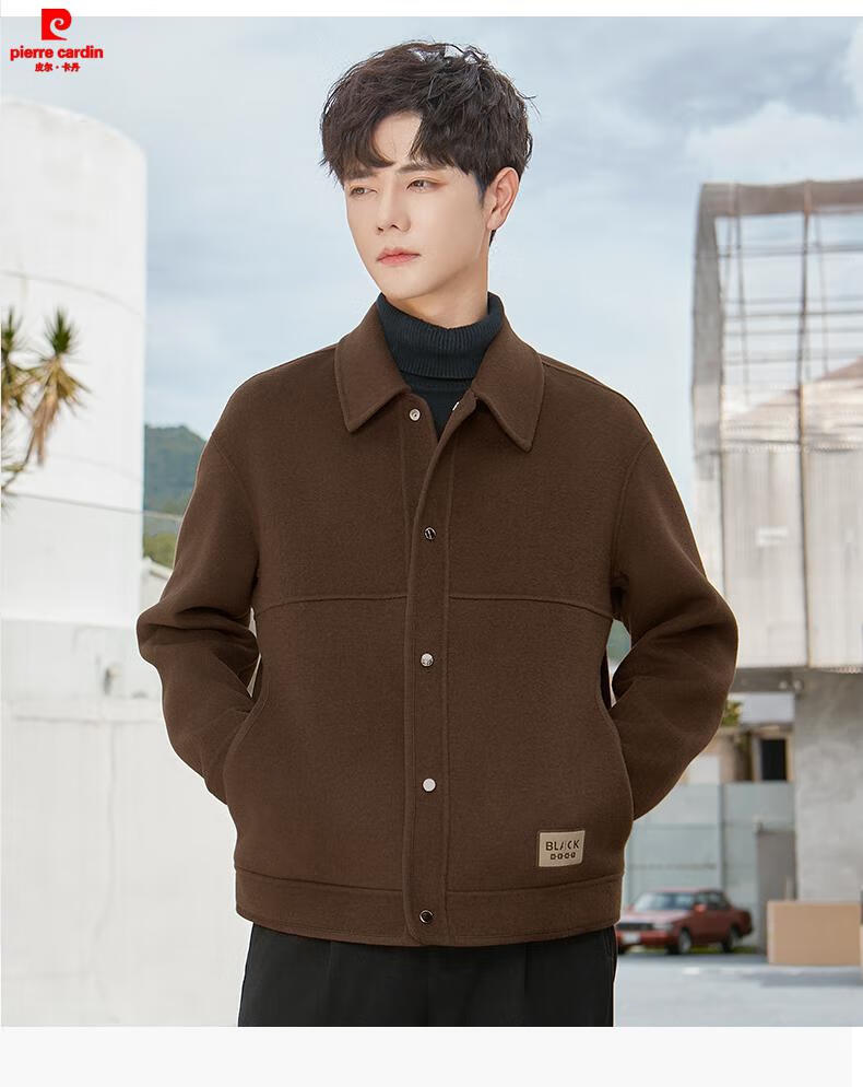 Pierre Cardin 2024 Autumn and Winter High-end Double-sided Woolen Coat Jacket Men's Lapel Wool Short Coat Men's Jacket Youth Green 52/XL