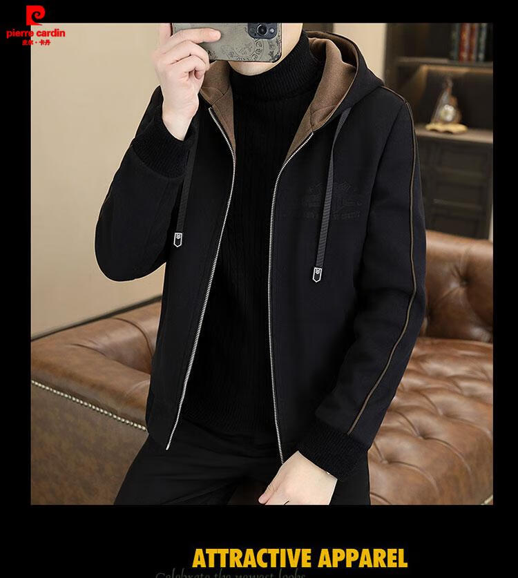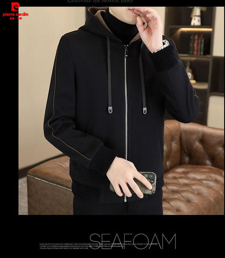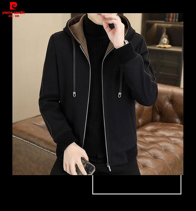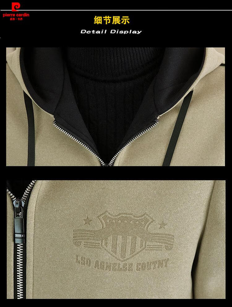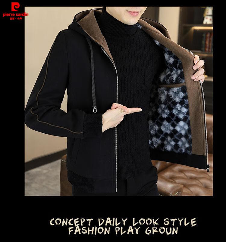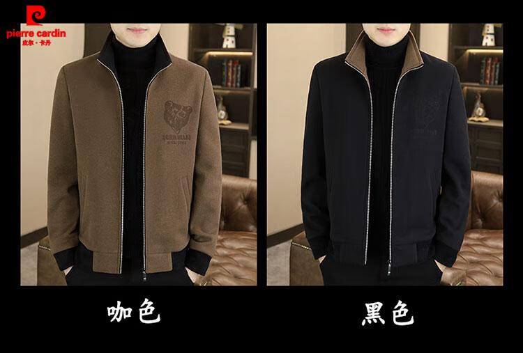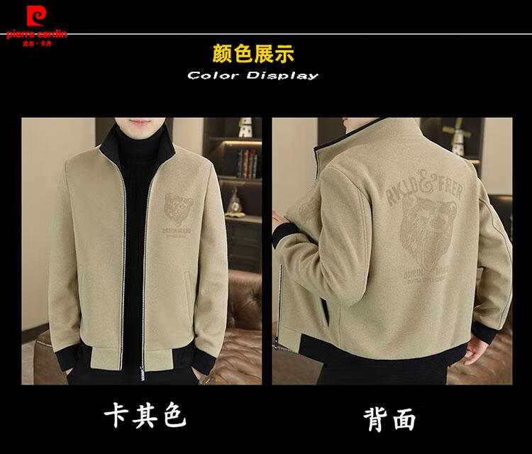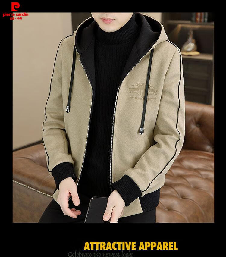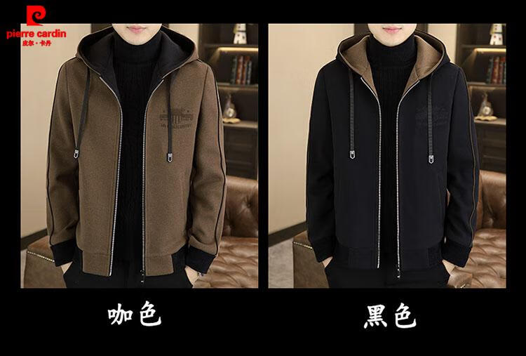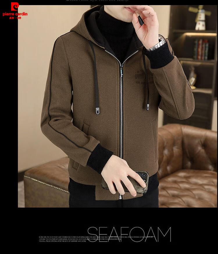 Pierre Cardin high-end woolen coat men's spring and autumn new casual hooded jacket men's winter short woolen coat khaki-regular-M76 XL