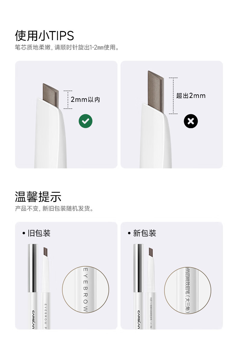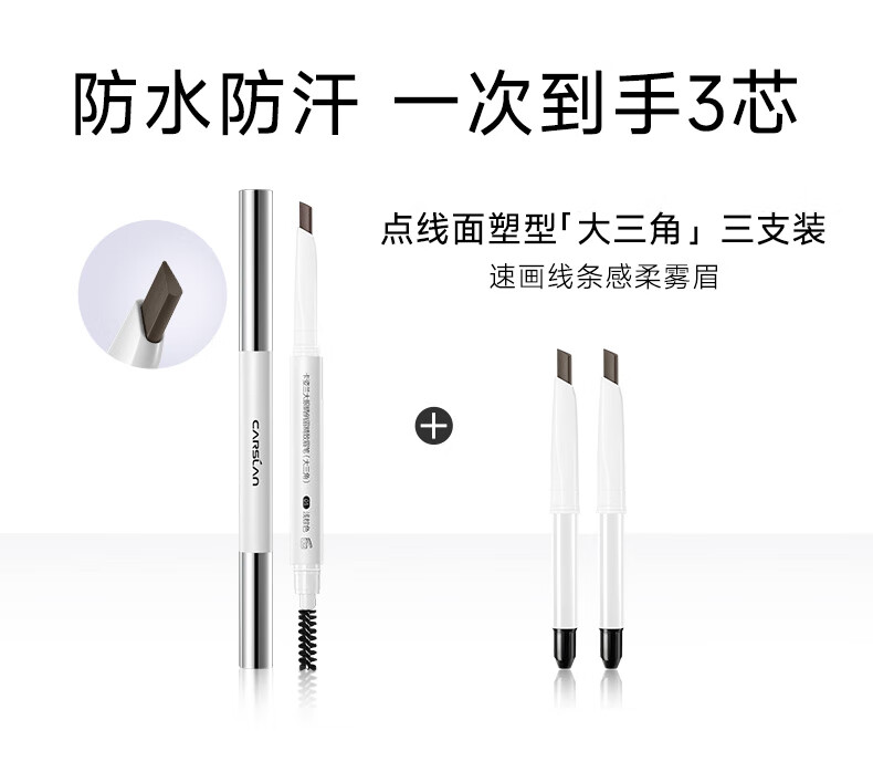 Carslan 3 eyebrow pencils waterproof, sweat-proof and non-fading wild eyebrow novice beginner lazy automatic men and women affordable big brand 1 replacement core * 2 02 dark brown - versatile color