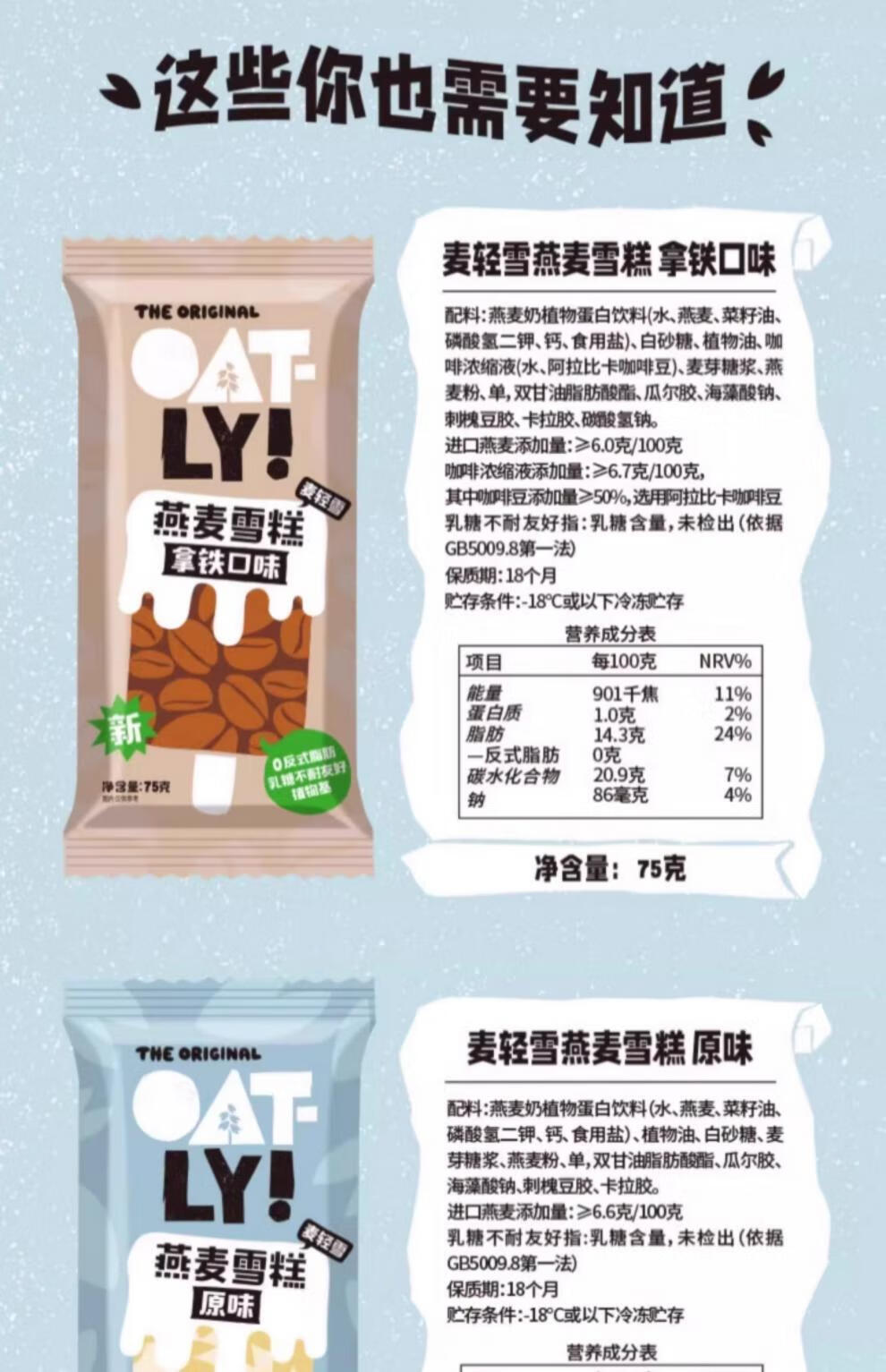 OATLY 20 pieces OATLY plant-based original ice cream McLight Snow Latte ice cream cold drink original flavor 20 pieces (1500g)