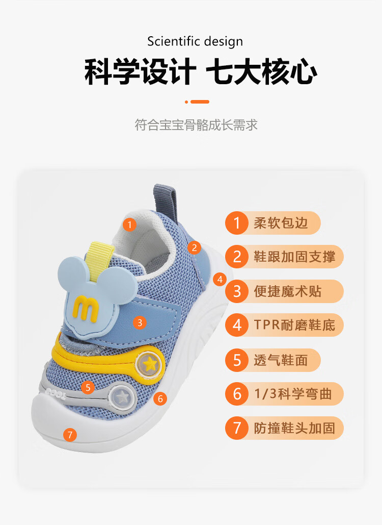 Western children's shoes toddler shoes for men and women baby autumn soft sole breathable mesh toddler shoes non-slip shoes sports stable casual shoes toddler shoes blue size 17 inner length 12.5cm