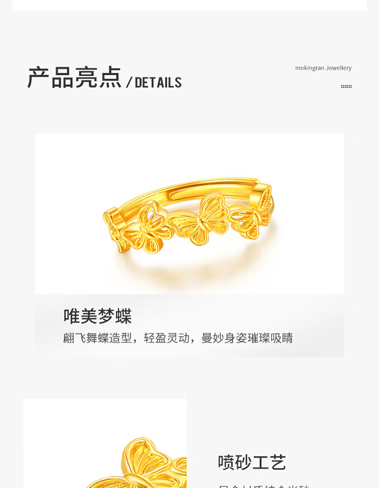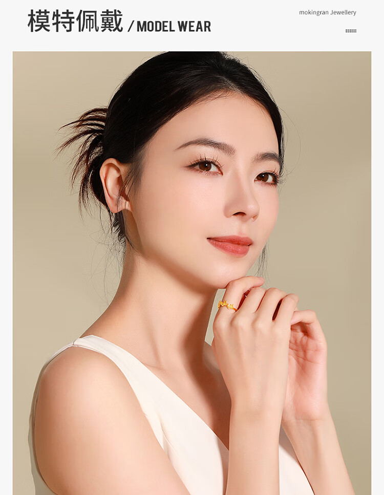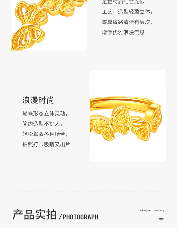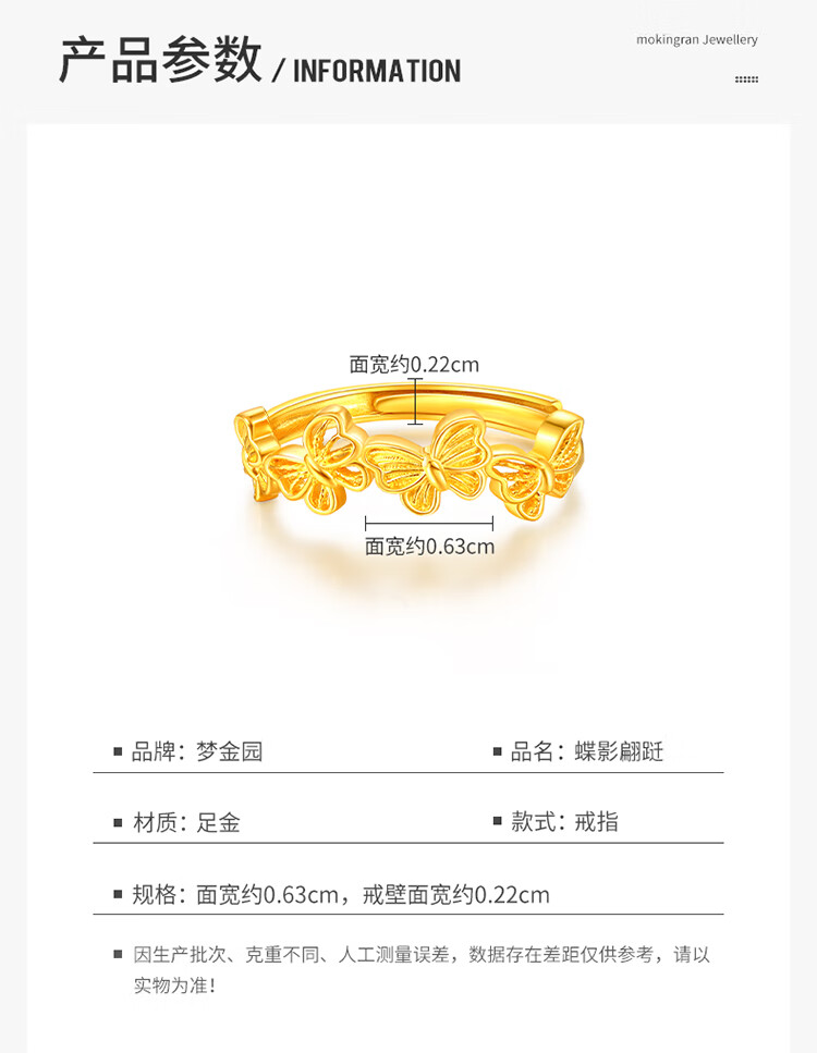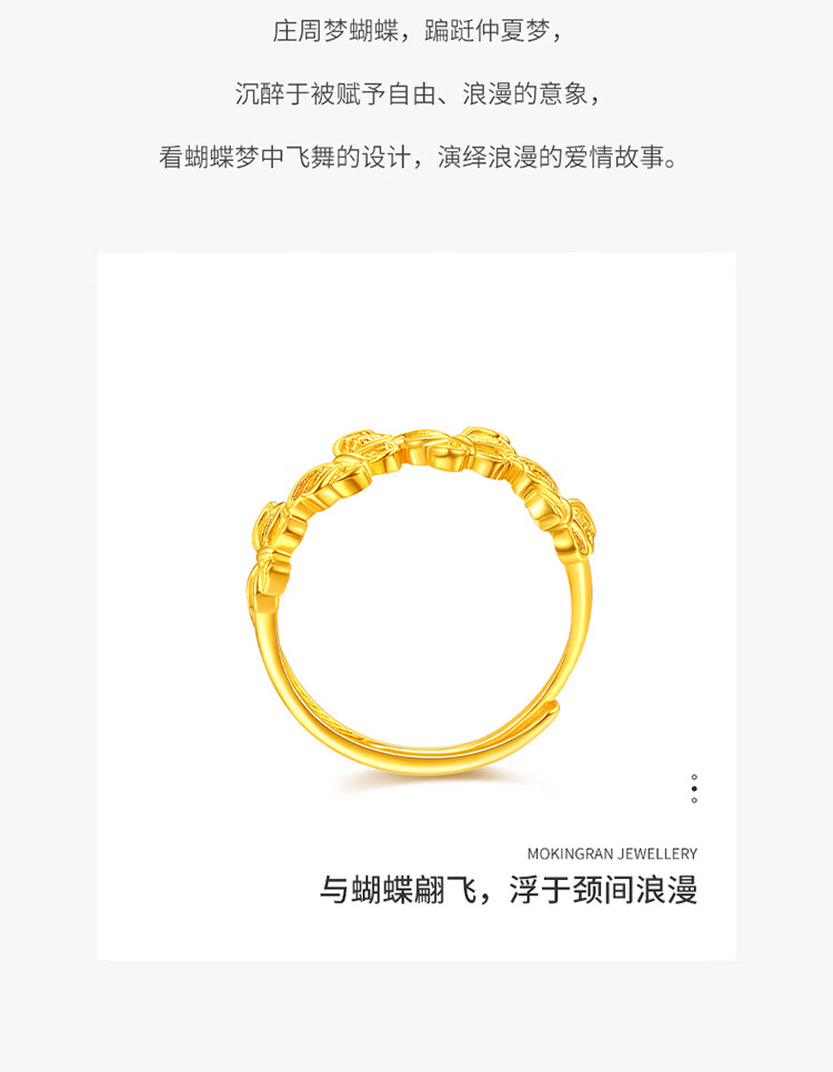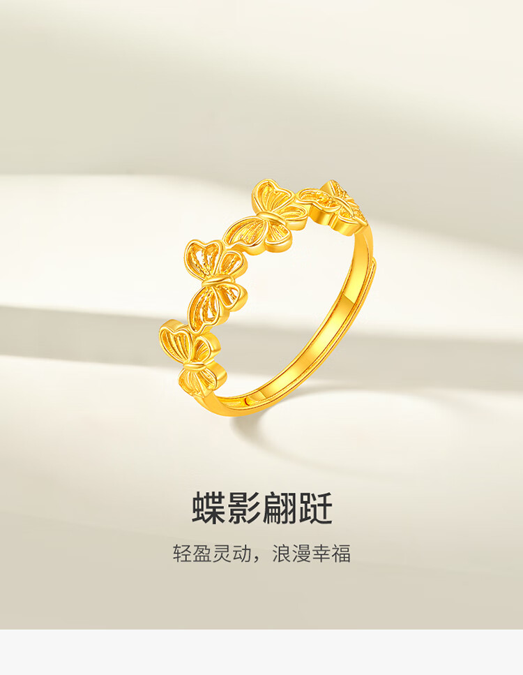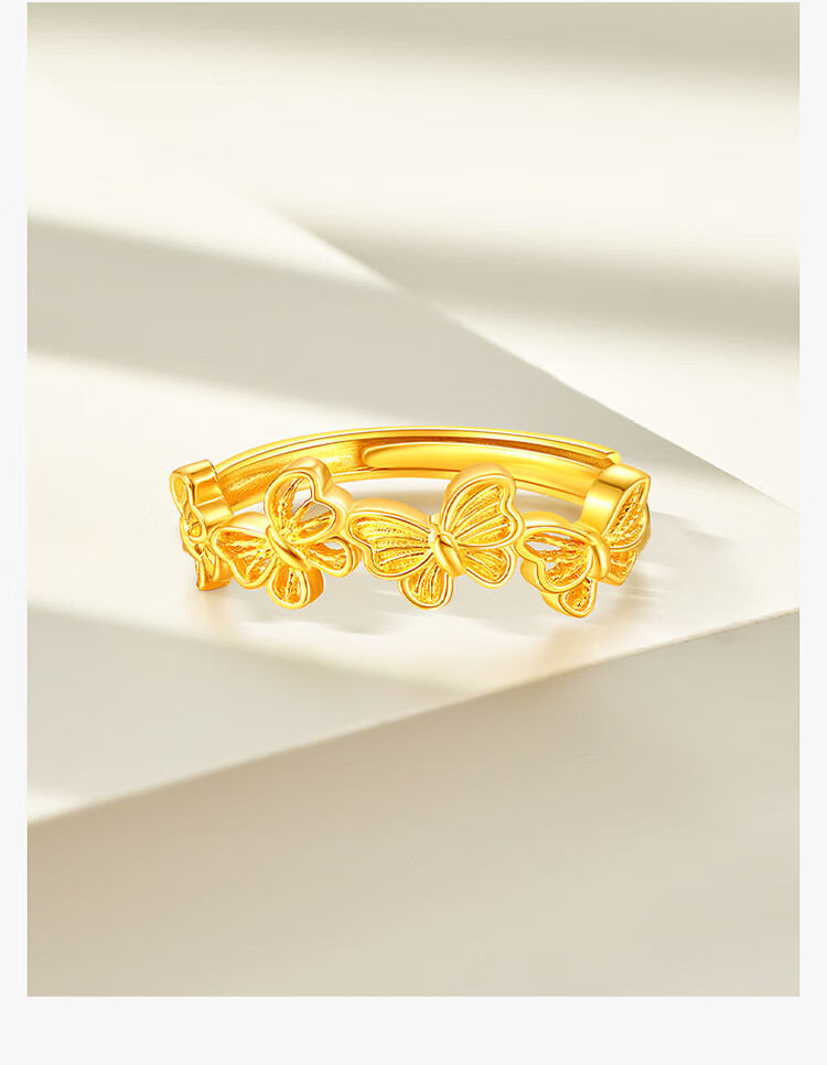 Mengjinyuan gold ring for women, butterfly pure gold index finger ring, live ring, birthday gift for girlfriend, about 3.08g