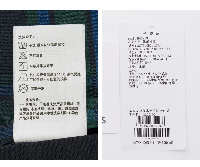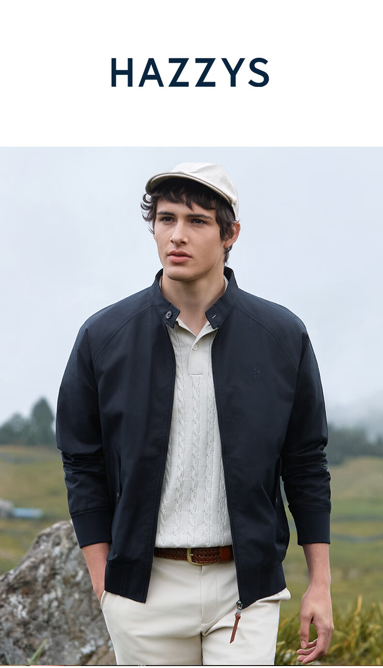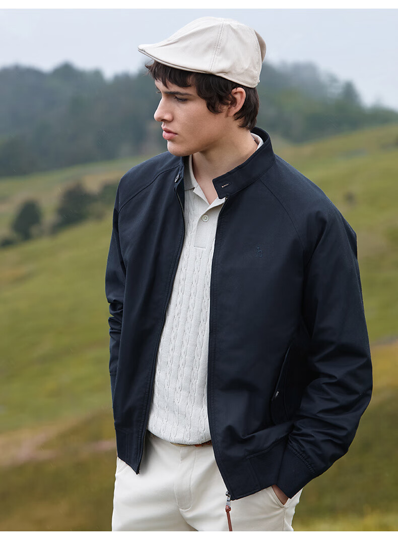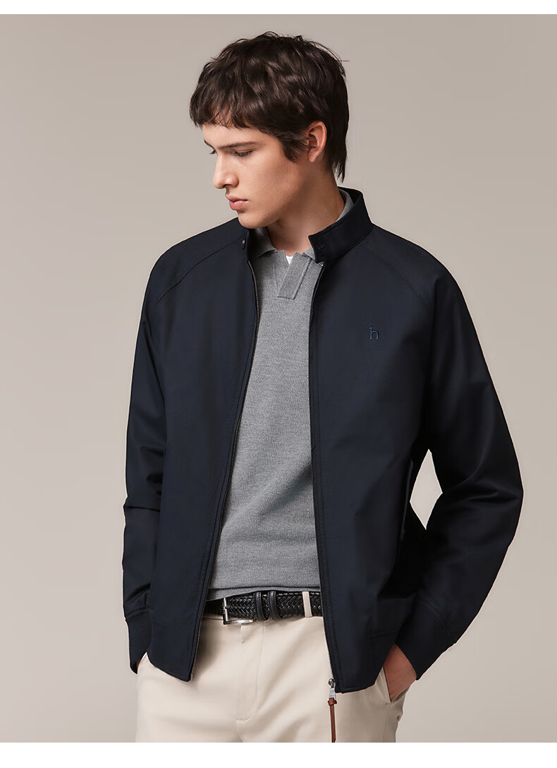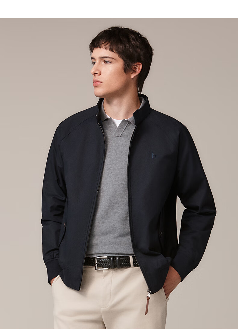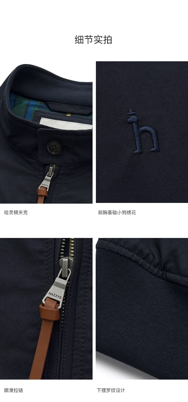 HAZZYS Men's Autumn and Winter Executive Style Men's Jacket Harrington Outdoor Casual Jacket Men's ASVZU0BCU12 Navy Blue NV L (175/96A 48)