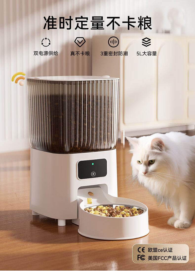 Chuangjing Yixuan automatic cat feeding remote pet feeder intelligent automatic cat timing and quantitative cat food and dog food feeding machine control 5L smart WiFi video model voice interaction c