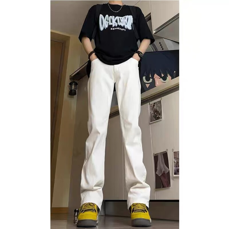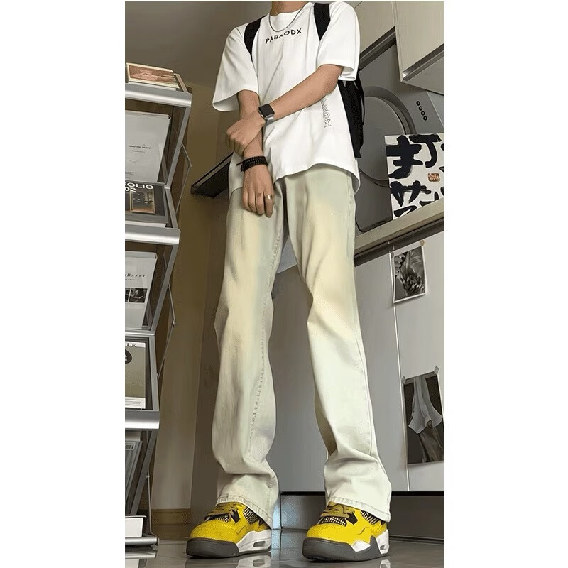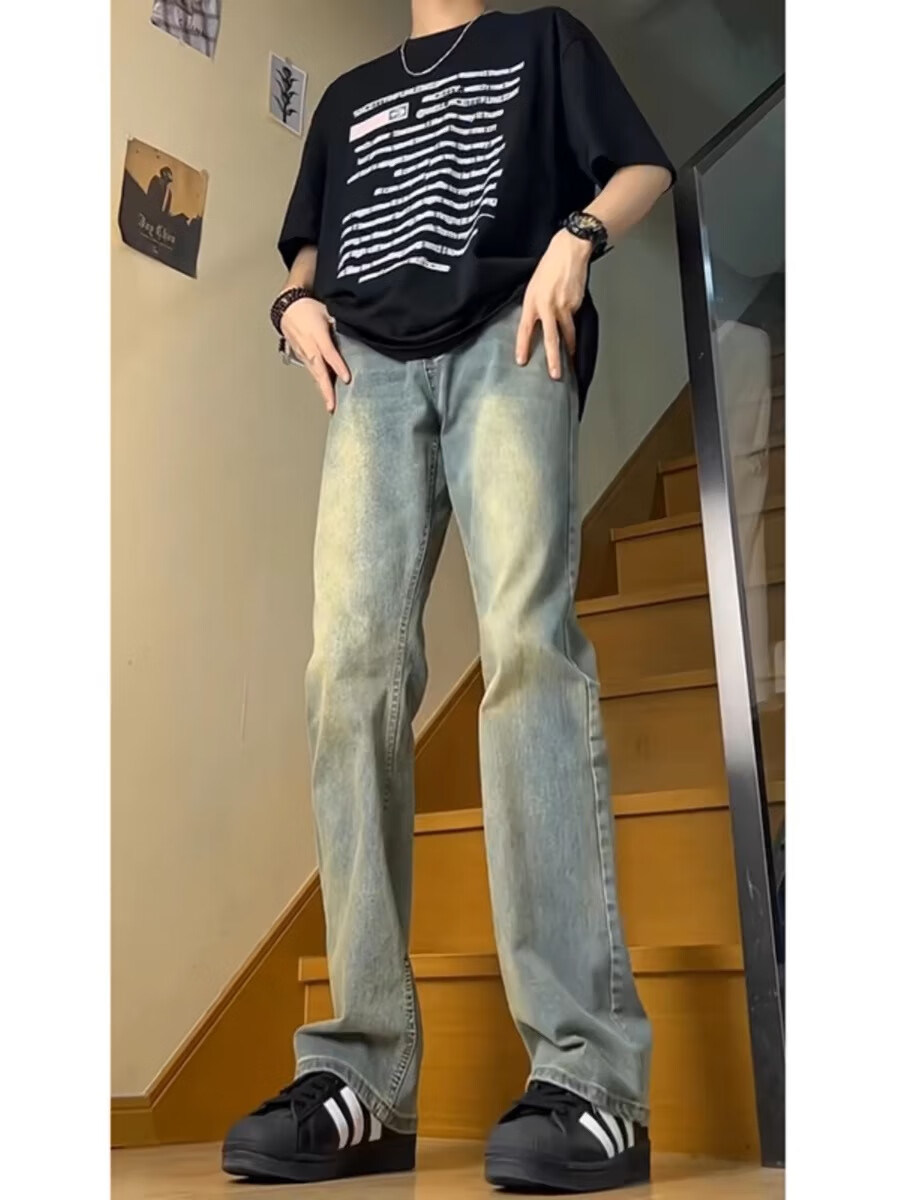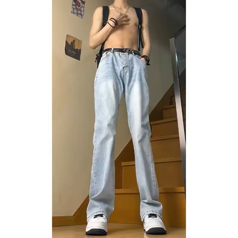 7 excellent products Micro-flare scimitar jeans for men plus velvet autumn and winter American high street stretch slim straight long pants for men DF-707 light blue XL