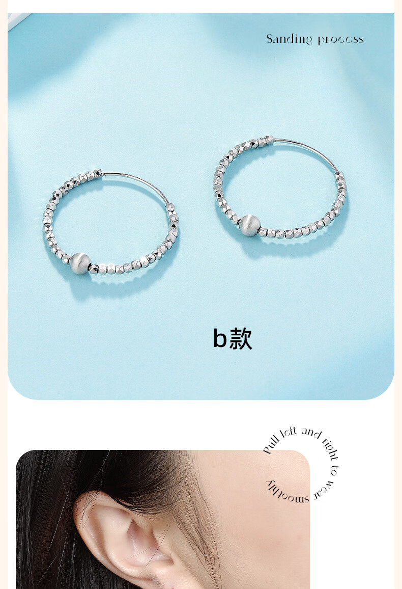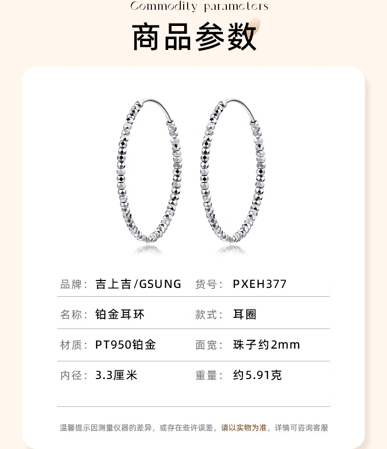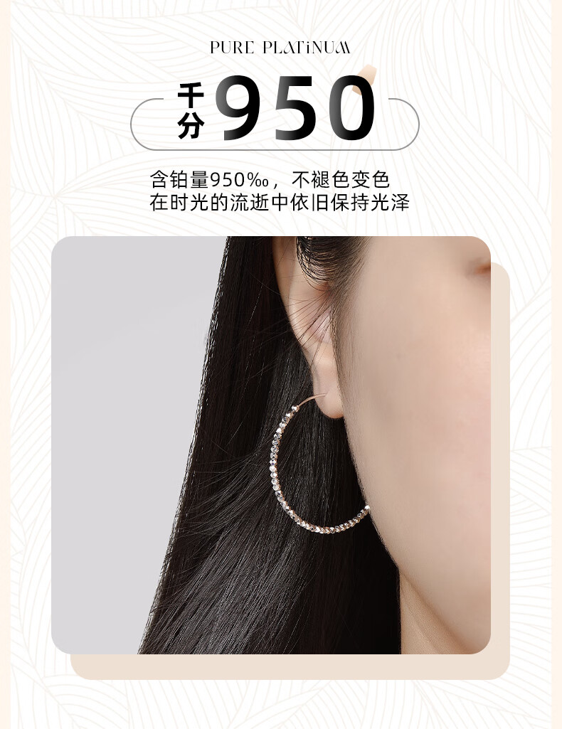 GsunG platinum large earrings for women PT950 shiny laser beads large inner diameter earrings platinum ear hooks for women fashionable style b earrings about 4.5g 2.3cm inner diameter pre-ordered