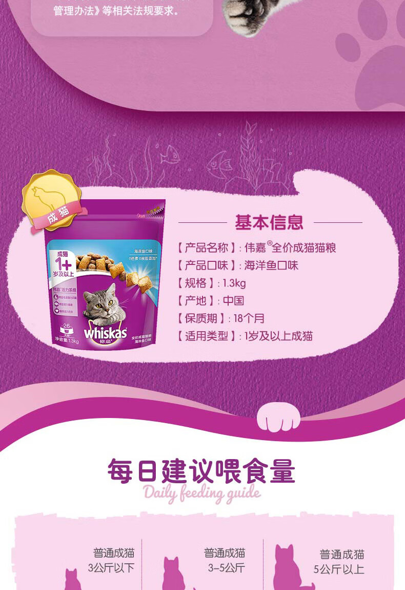 Weijia adult cat food ocean fish salmon nutrition fattening hair gills whiskas full price cat staple food 1.3kg adult cat food beef flavor 1.3kg